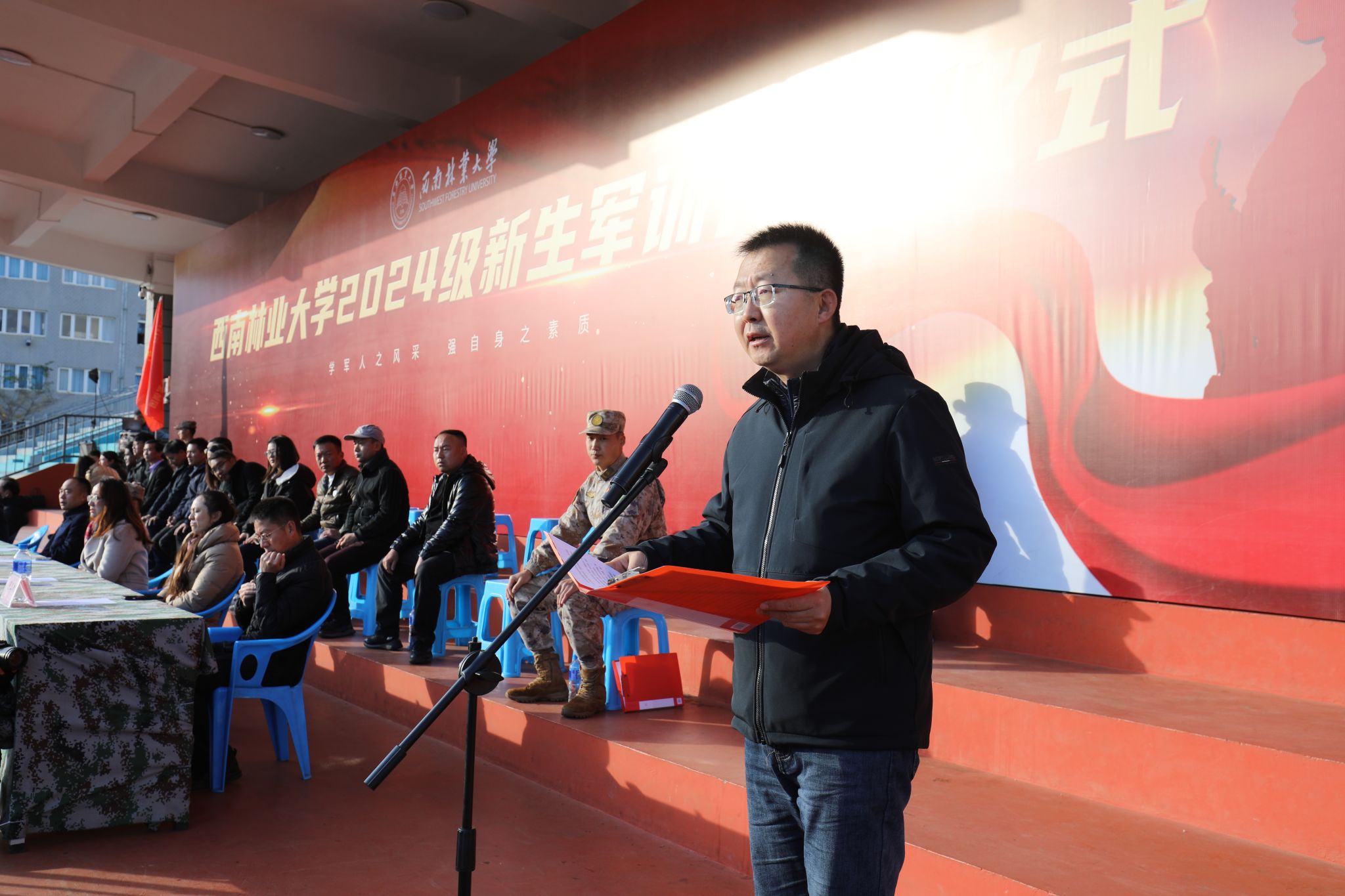 12月21日,kaiyun体育网页登录入口2024级新生军训开训仪式在北区足球场举行。校党委副书记李君、副校长郭华,军训团团长杨浩,学校各部门负责人以及各学院分管学生工作负责人、辅导员参加开训仪式。仪式由学生处(学生工作部、武装部)处(部)长徐高峰主持。