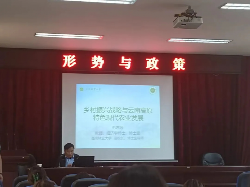 7月7日,副校长彭志远以《乡村振兴战略与云南高原特色现代农业发展》为题,为继续教育学院和经济管理学院师生讲授形势与政策课。