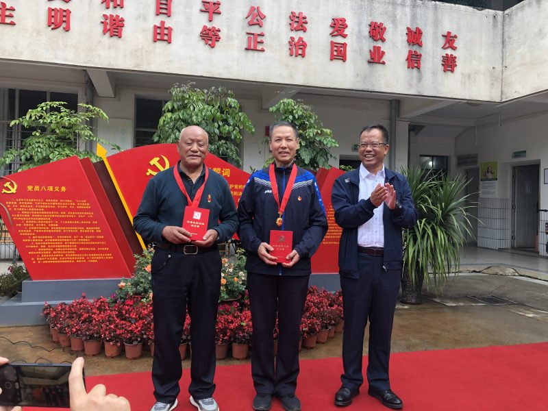 魏宏为邹华、杨文祥、潘俊岺这三位有50年党龄的老党员佩戴纪念章,激励大家统一思想,振奋精神,增强干劲。