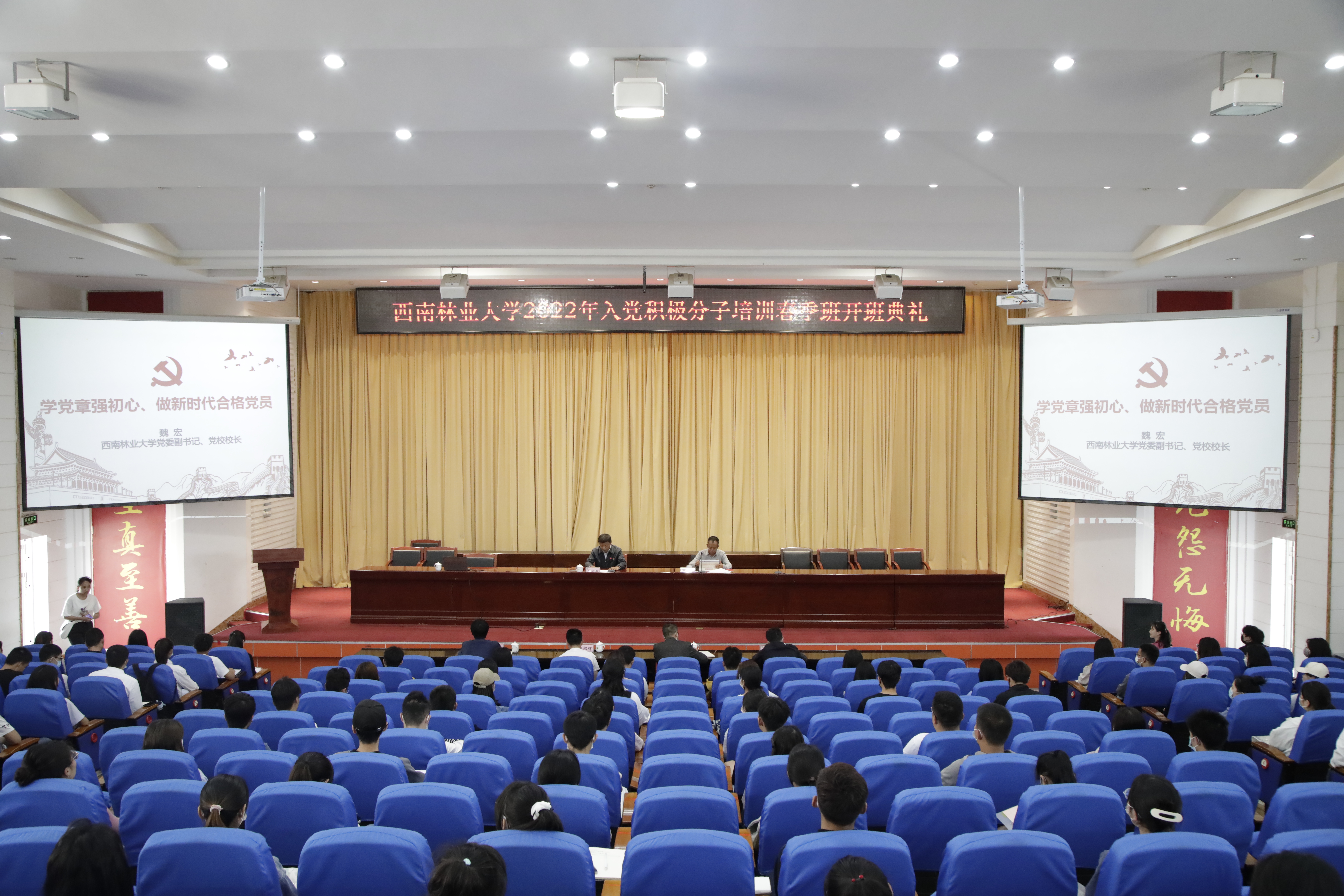 为严格把好发展党员“入口关”,进一步加强入党积极分子培养教育,提高党员后备队伍的思想政治理论水平,切实保证学校党员发展质量,5月25日下午,kaiyun体育2022年入党积极分子培训春季班开班典礼在图书馆大报告厅举行。学校党委副书记魏宏、党校常务副校长黄勇、组织部部长郭正春,党委办公室副主任杨正伟,宣传部副部长李福源,武装部副部长徐大华、各二级党组织组织员、2022年度入党积极分子培训班部分学员代表共220人参加了开班典礼。典礼由郭正春主持。
