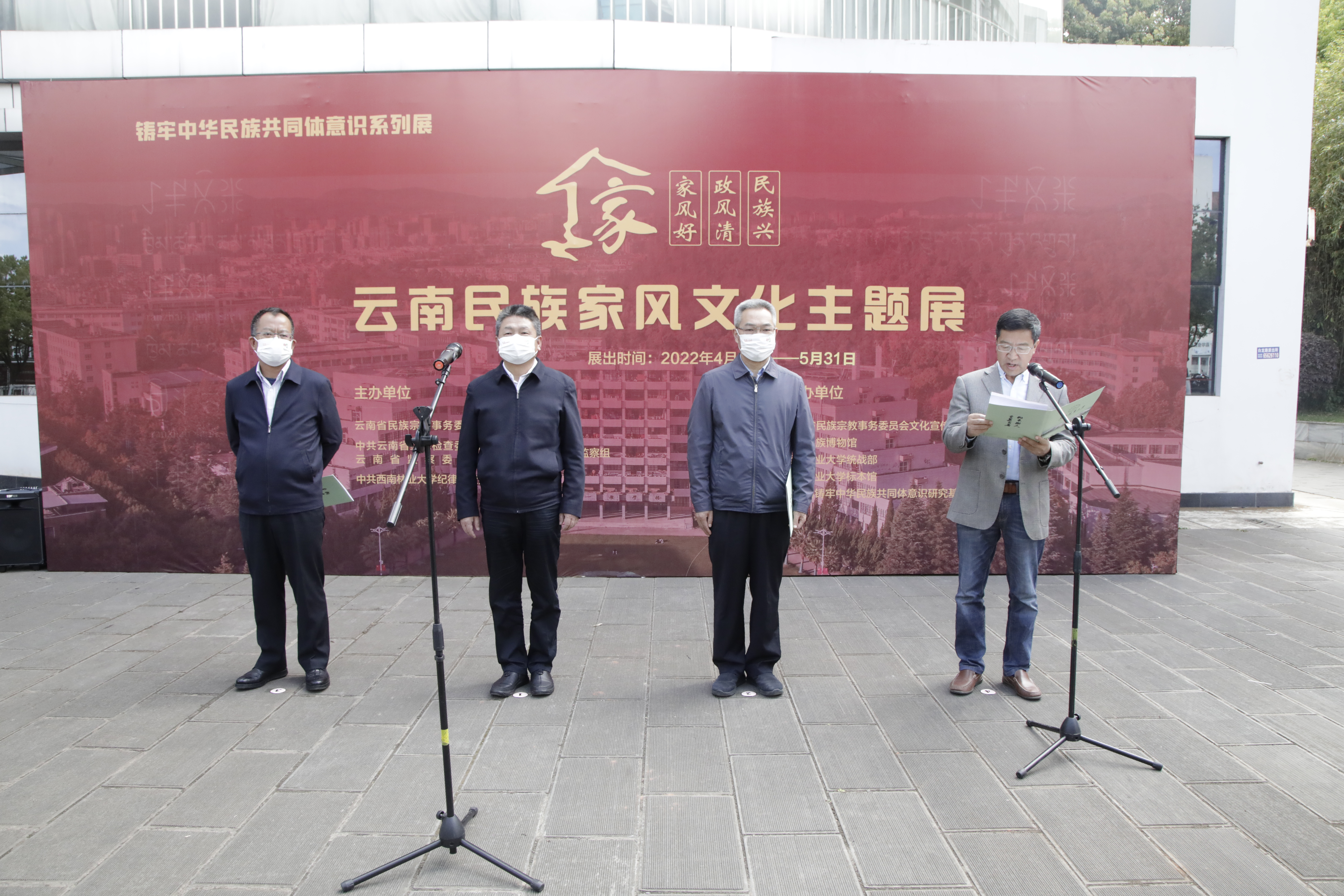 周学斌宣布“家风好 政风清 民族兴——云南民族家风文化主题展”开展。师生在讲解员的带领下体悟民族历史、感悟家风文化,聆听民族团结进步的云南故事。