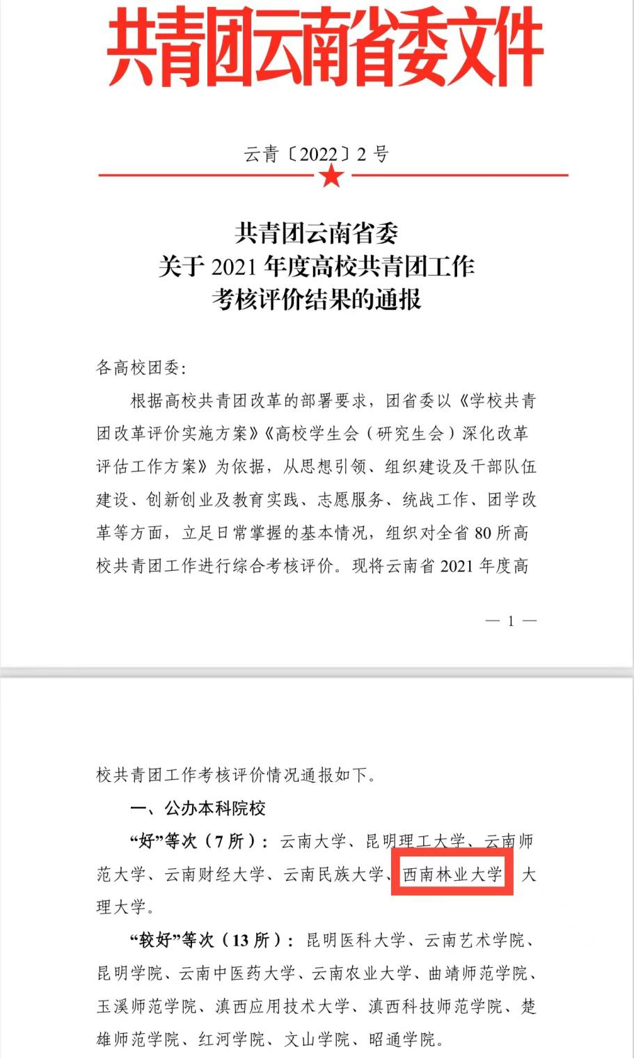 4月20日,共青团云南省委公布2021年度云南省高校共青团工作综合考核评价结果,kaiyun体育获评“好”等次。
