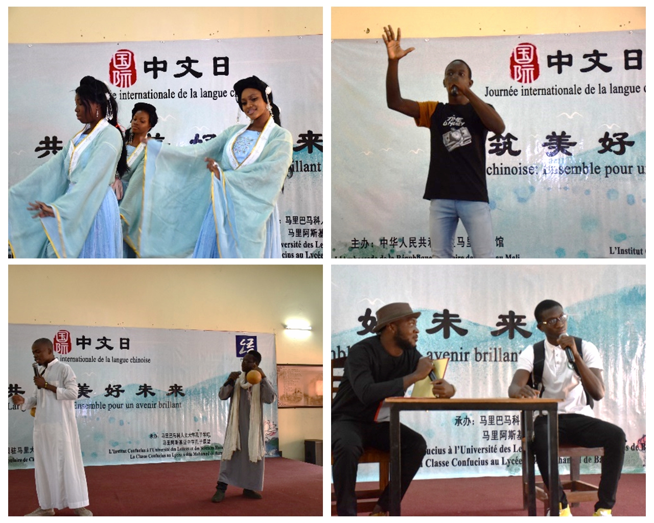 本次活动采取线上线下相结合的方式举办,主题为“中文,共筑美好未来”,内容包含中文书法比赛、舞蹈、诗歌朗诵、情景剧表演、微课、汉语言文化知识抢答等六大类。活动现场,孔子学院师生表演了丰富多彩的文艺节目;陈志宏和特拉奥雷为马里大学生汉字硬笔书法比赛的获奖选手颁奖,并接受了马里国家广播电视台采访。(来源:对外合作交流处/ 文/图:刘惠子/审核:秦云帆/责任编辑:朱皓天)