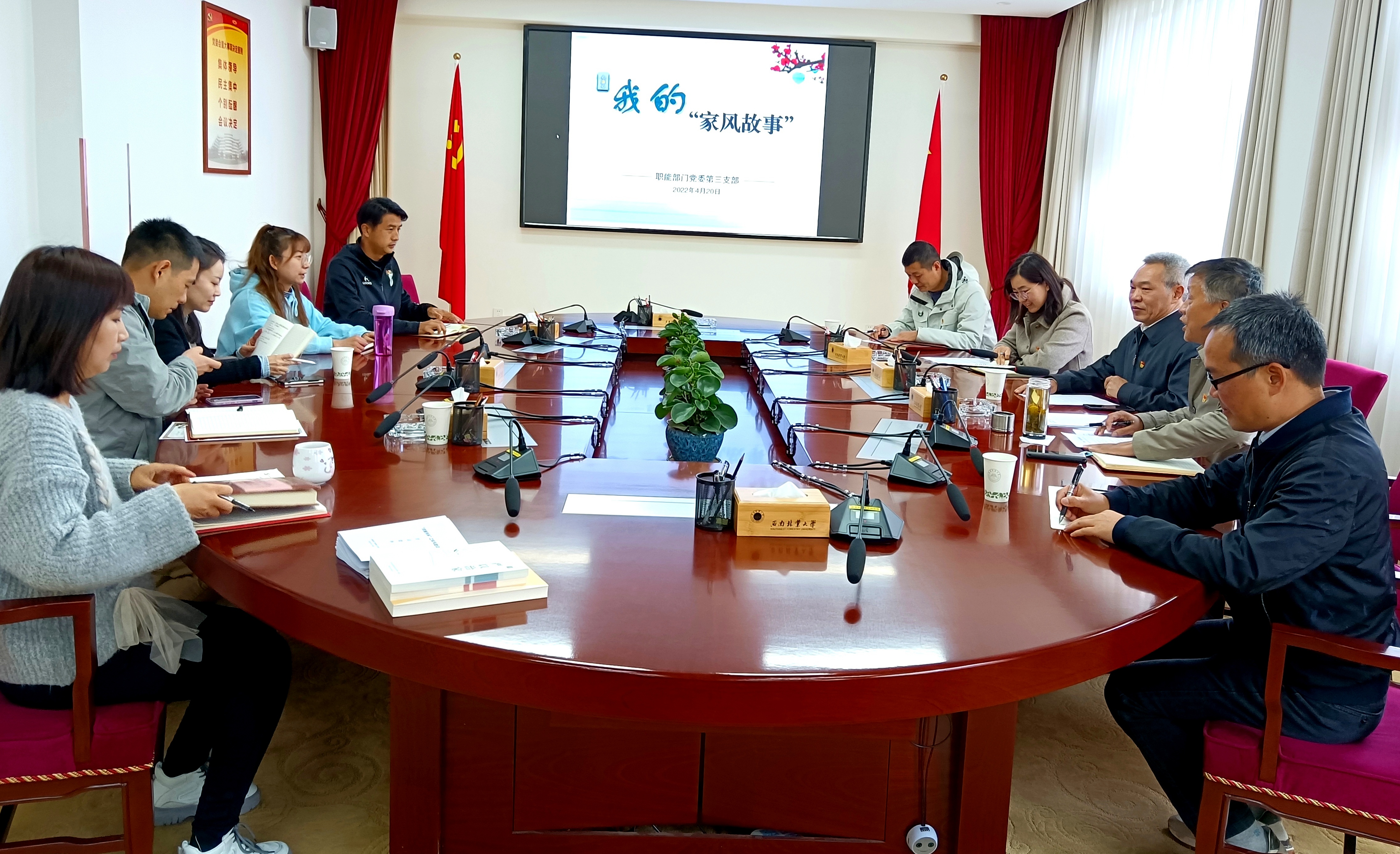 4月21日,职能部门党委三支部召开“心廉心 我的家风故事”主题党日活动。校党委书记周学斌参加活动,活动由支部书记郭正春主持。