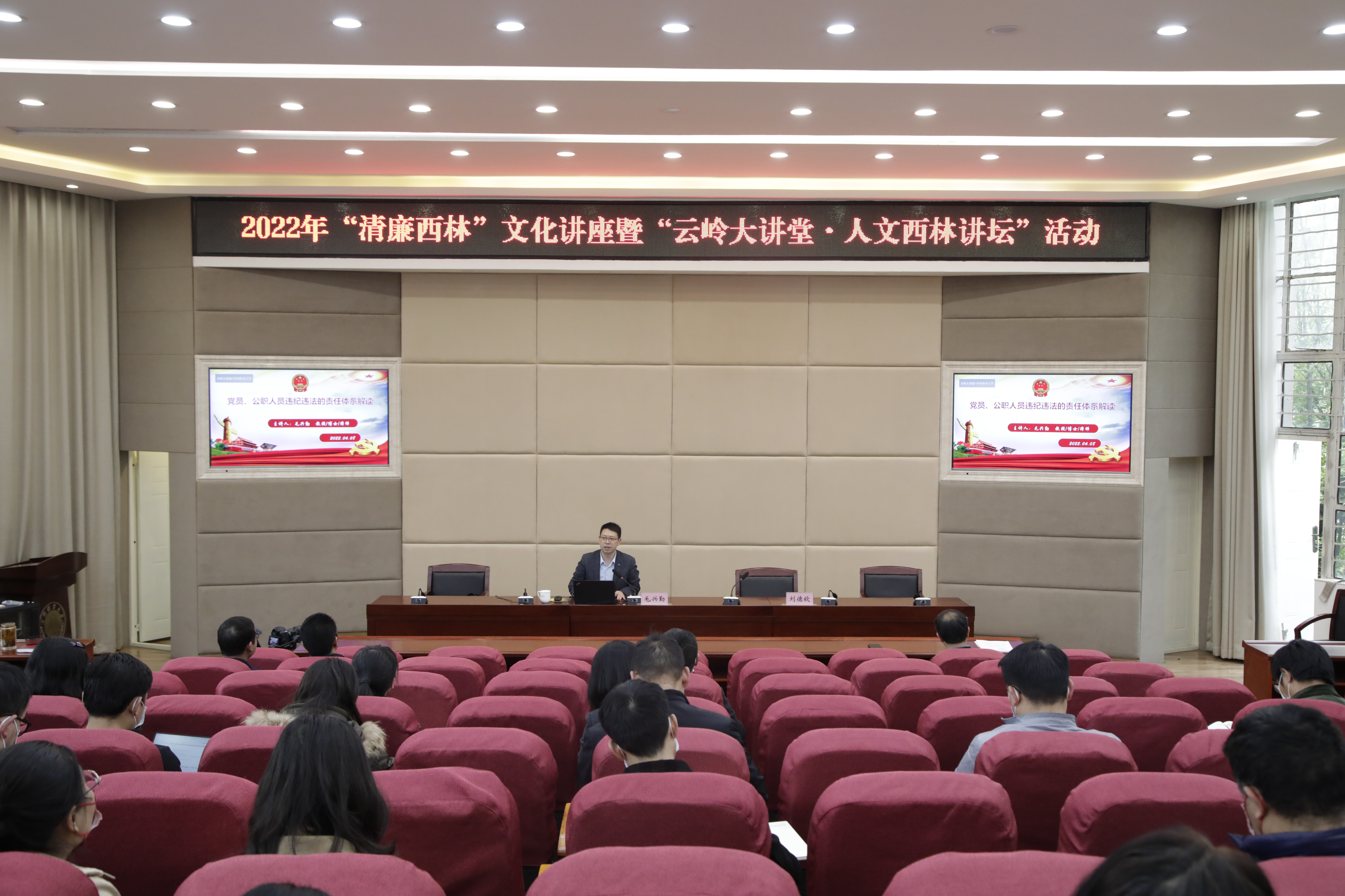 4月8日下午,kaiyun体育举办“清廉kaiyun体育”文化讲座暨“云岭大讲堂·人文kaiyun体育讲坛”活动,各二级单位负责人、办公室主任参加会议,校纪委副书记、纪检处处长刘德钦主持会议,并做“清廉kaiyun体育”文化周活动动员讲话。云南师范大学教授毛兴勤应邀作了题为《党员、公职人员违纪违法的责任体系解读》专题讲座。