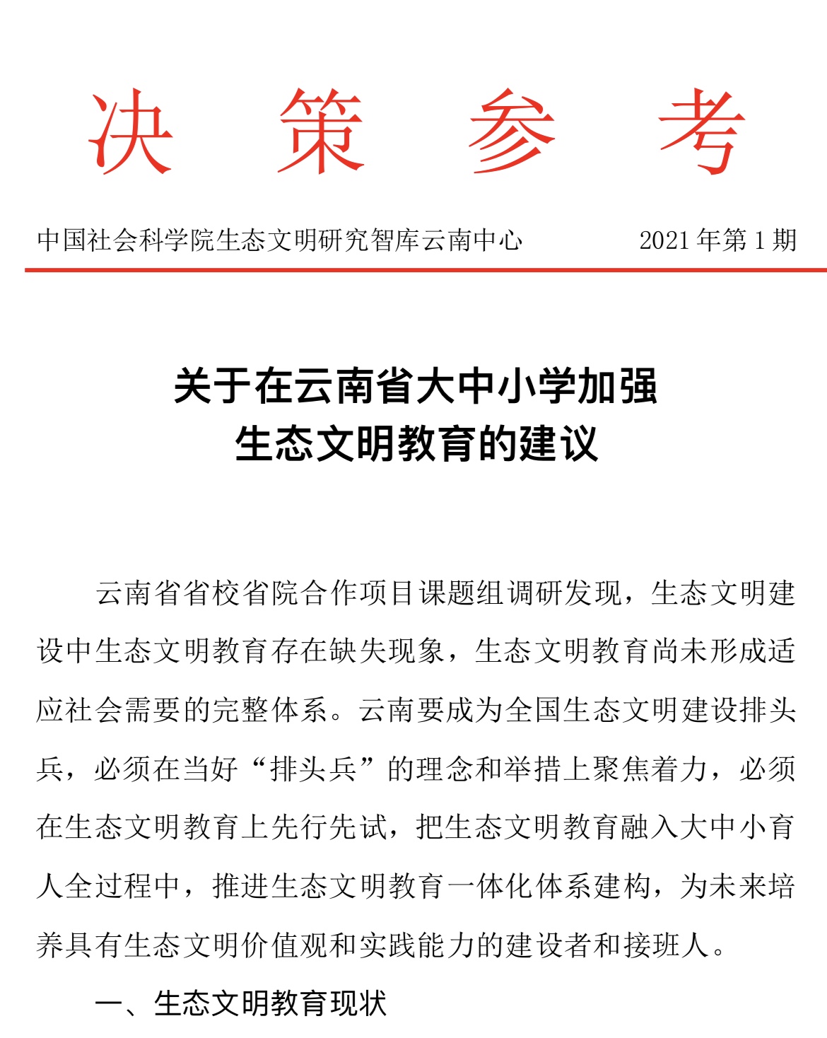 2021年12月,kaiyun体育省院省校合作项目《新时期基层党建与生态文明建设耦合模式及其效应研究》课题组撰写的报告获省领导批示,由省教育厅领导阅研。该报告题为《关于在云南省大中小学校加强生态文明教育的建议》,由党委副书记魏宏、宣传部副部长李福源、地理与生态旅游学院党委副书记张卓亚等撰写。报告阐明了生态文明教育的现状,分析了生态文明教育中存在的主要问题,提出了一体化推进云南大中小学生态文明教育的对策建议。