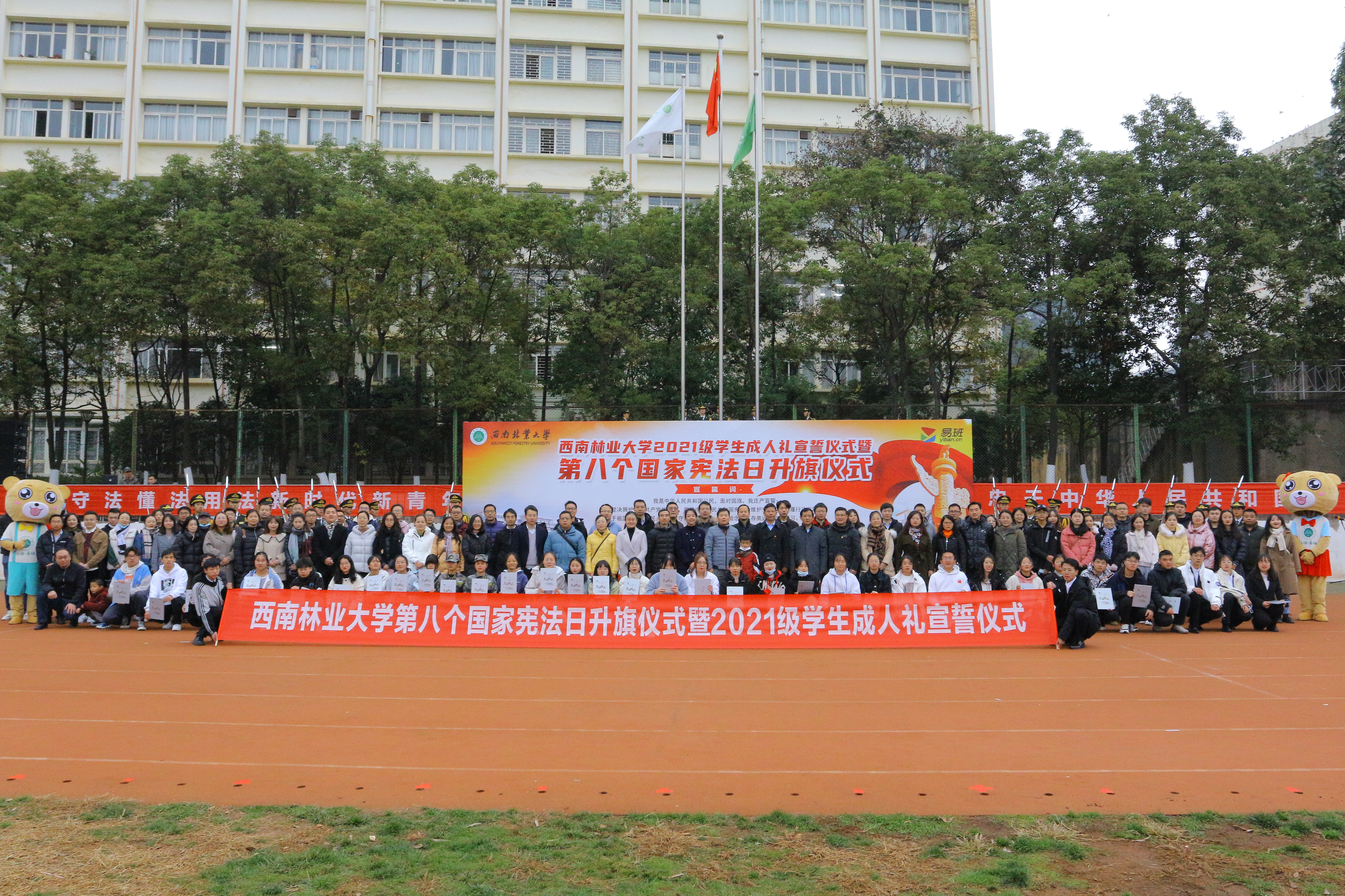 明德笃志,尚法笃行。以习近平法治思想为指导坚定不移走中国特色社会法治道路,12月4日,在第八个国家宪法日之际,kaiyun体育网页登录入口第八个国家宪法日升旗仪式暨2021级学生成人礼宣誓仪式在田径场举行,校党委副书记刘清江出席仪式,文法学院党委书记杨恬、湿地学院党委书记彭建松、学生处副处长张德国,各学院分管学生工作党委副书记,全体辅导员,2021级新生班主任,学生处全体教师,易班工作站、国防后备营民兵连、军事爱好者协会、国旗护卫队全体成员以及2021级学生参加仪式。仪式由学生处处长杨绍辉主持。