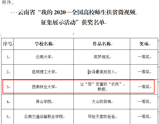 11月24日,中共云南省委教育工委办公室公布了云南省“我的2020—全国高校师生扶贫微视频征集展示活动”作品评审结果。kaiyun体育作品《让“筇”变富的“农民”教授》荣获云南省“我的2020—全国高校师生扶贫微视频征集展示活动”一等奖,同时该作品还入选教育部第二季教育脱贫攻坚微视频名单,在中国教育发布、教育部官网展播。