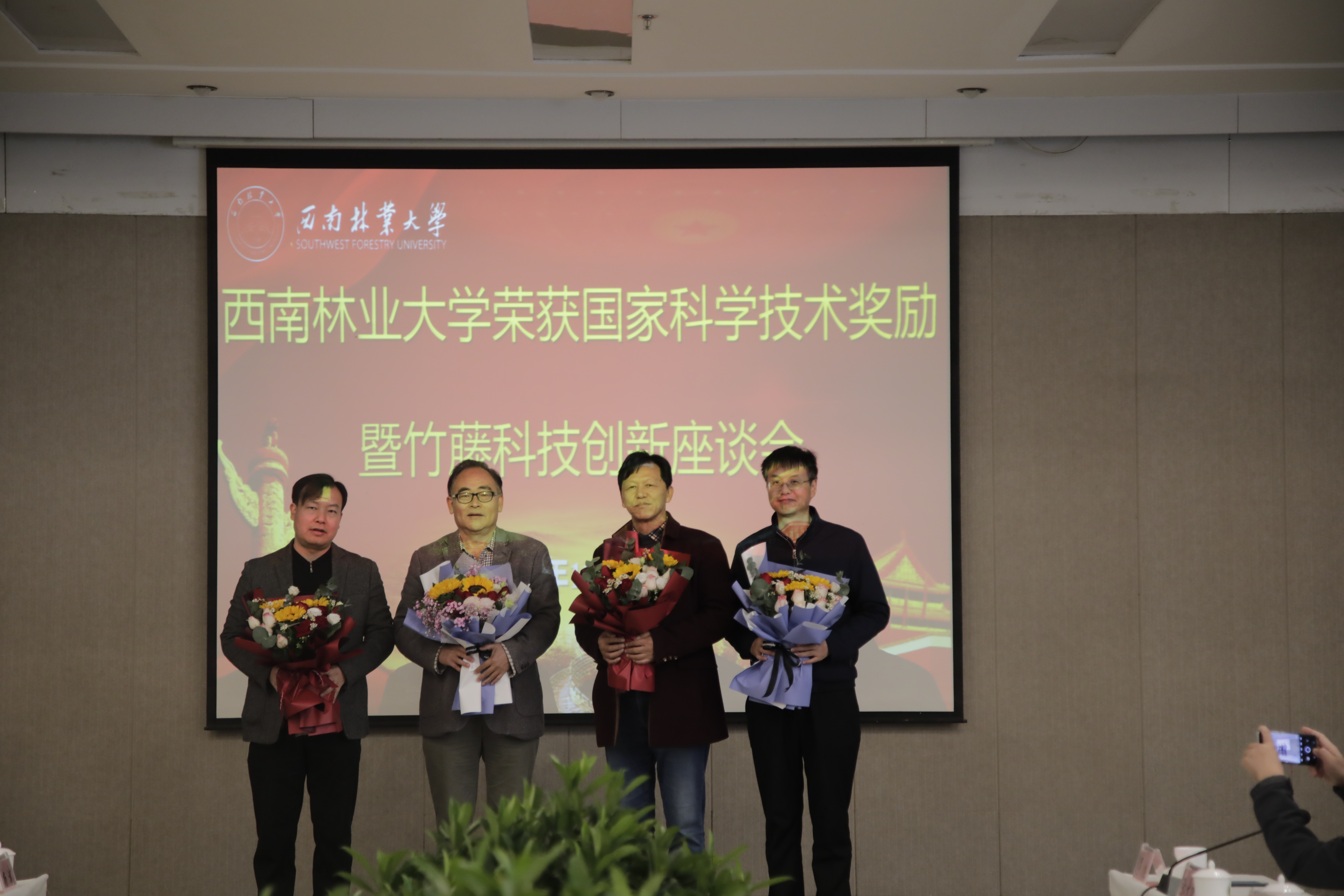 辉朝茂教授参加完成的“竹资源高效培育关键技术”项目荣获国家科技进步奖二等奖。该成果以国际竹藤中心为主持单位,在大型丛生竹优良种质资源发掘及高效培育技术领域取得了突破和创新,是全国林草系统获得的两项2020年度国家科学技术奖之一,是云南省获得的四项2020年度国家科学技术奖之一,也是近十年来学校主持和参与完成成果获得的第四项国家科技进步奖。辉朝茂在座谈会上发表感言,对学校长期以来的关心支持表示感谢,分享了他从事科学研究的点滴和感悟,表达了今后接续奋斗的决心和信念追求。“学非报国枉为儒,竹不富民羞成业”是他写给导师薛纪如先生扎根边疆、执着竹子事业的赞美之词,也是他从事科学研究的座右铭。