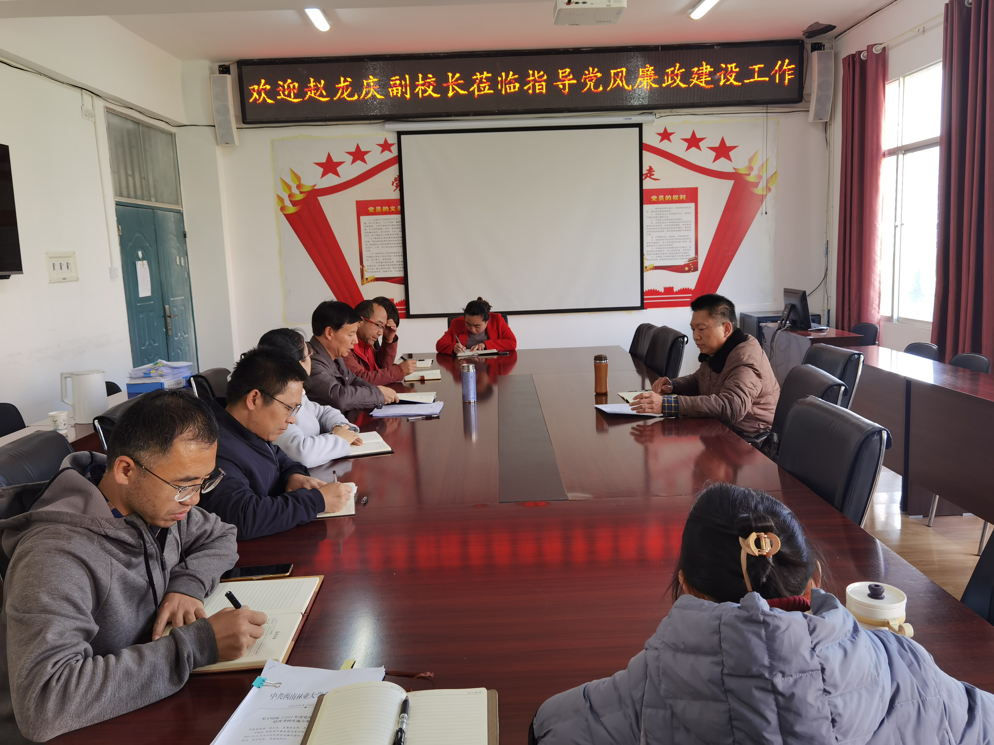 赵龙庆检查指导了学院党风廉政建设工作情况,肯定了学院党风廉政建设责任制检查的准备工作和学院年度党风廉政工作成效,鼓励大家再接再厉做好党风廉政和党建工作等各项工作。