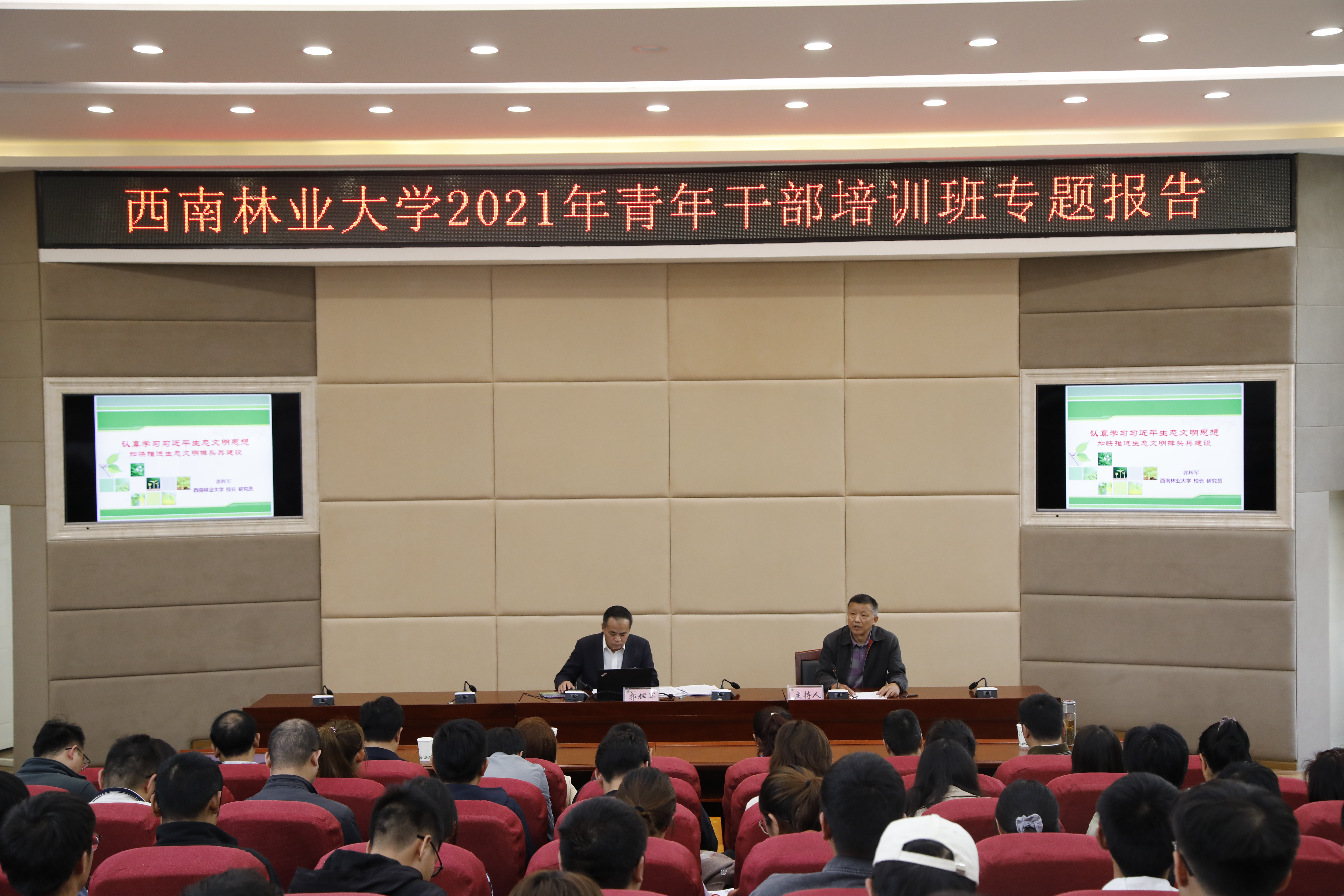 10月19日,校长郭辉军作了题为“认真学习习近平生态文明思想加快推进生态文明排头兵建设”的专题报告。郭辉军从“习近平生态文明思想、生态文明建设主要内容和任务、生态文明评价以及生态文明建设有关问题”四个方面为学员们系统讲授了习近平生态文明思想的思想渊源、核心内容、深刻内涵,全面介绍了生态文明的理论框架、内容任务、评价方法体系等重要内容,同时结合云南生态文明建设中的实践案例“湖泊革命”等分析了生态文明建设中存在的主要问题并提出了解决对策,并与学员们进行了有效互动,引发了大家的深入思考。郭辉军强调,习近平生态文明思想是习近平新时代中国特色社会主义思想的重要组成部分,且“极具特色、博大精深”,全体学员要“因时而动”,高举习近平生态文明思想大旗,结合习近平生态文明思想中提到的方方面面关注国家和云南省战略布局开展自身的教学、科研和管理等工作,争取在各自岗位上取得事半功倍的显著成效,为百年kaiyun体育梦的蓝图贡献自己的一份青春力量。