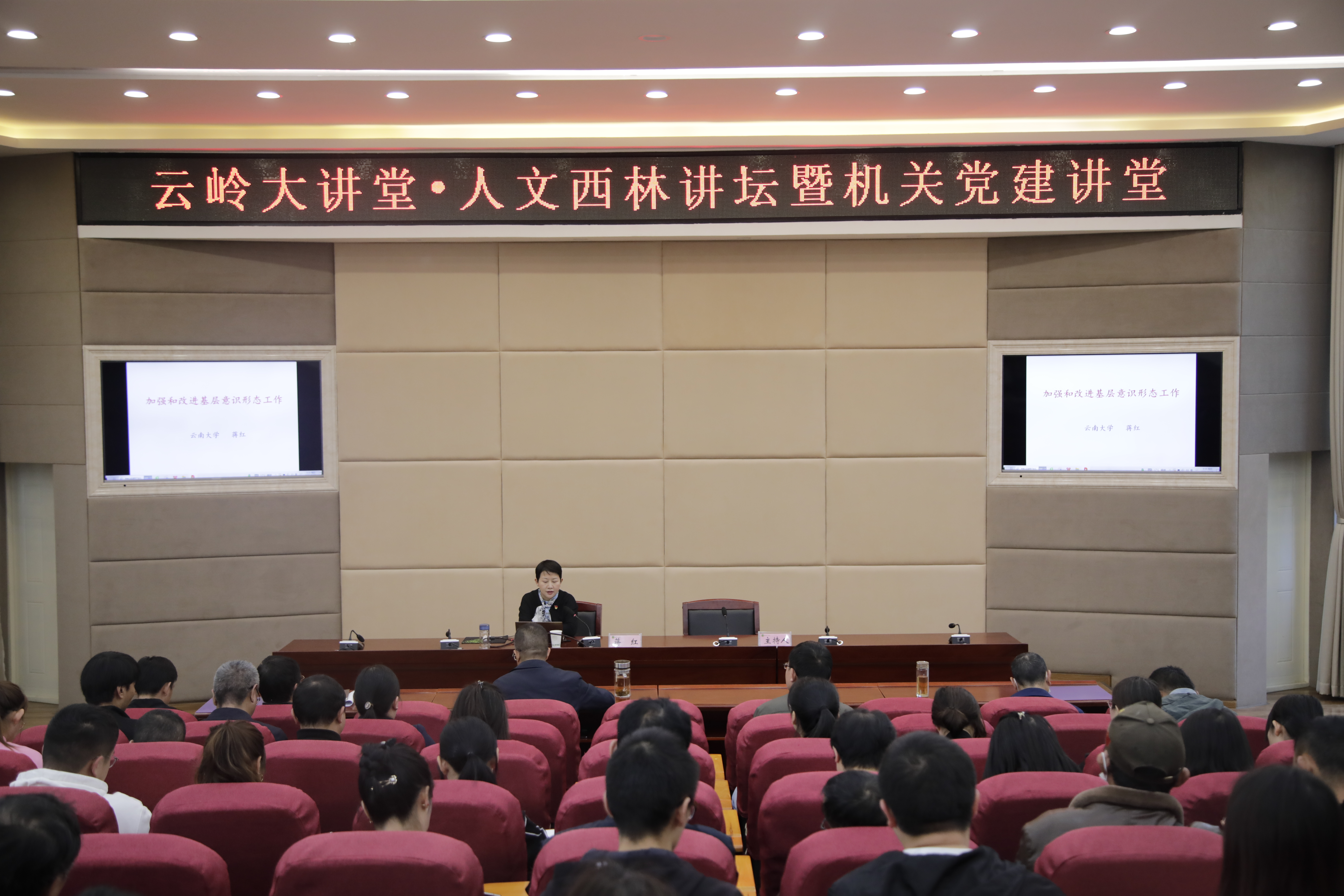 11月4日下午,机关党委联合社会科学管理办公室、林学院共同组织开展题为“建设具有强大凝聚力和引领力的社会主义意识形态”的专题党课。此次专题党课结合“云岭大讲堂·人文kaiyun体育讲坛”、机关“文化之窗”党建行动计划之“一期一讲堂”系列活动、“万民党员进党校”教育培训活动统筹开展,特别邀请云南大学二级教授,博士生导师、国家社科基金重大专项首席专家,云岭学者、云南大学《思想战线》编辑部•文科学报编辑部主任、主编蒋红授课。机关和林学院的200余名党员参加了党课,校党委副书记魏宏主持此次党课。
