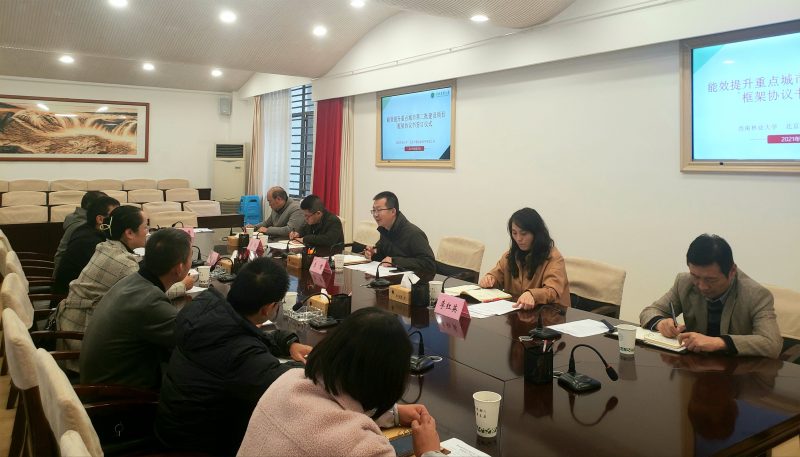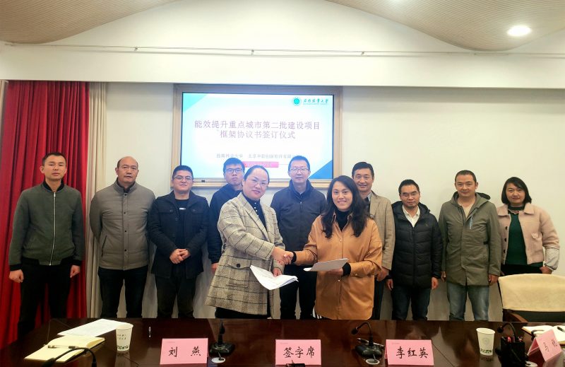 李红英与刘燕签订《能效提升重点城市第二批建设项目实施框架协议书》,刘燕对学校的信任与支持表示感谢,她表示,协议签订后将尽快实施项目,实现节能目标,树立示范标杆。随后,校企双方就水电计量方式、各高校节能实施形式、能效管控、资源整合等方面进行交流探讨。