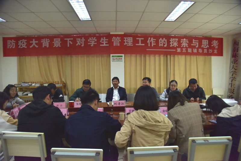 10月15日,学生处、辅导员发展中心组织以“防疫大背景下对学生管理工作的探索与思考”为主题的第五期辅导员沙龙在行政楼104会议室举行,校党委副书记刘清江出席活动。学生处相关领导,林学院、材料科学与工程学院、土木工程学院、体育学院党委副书记,及来自学生工作一线的9名专职辅导员,学生管理与思政教育科、辅导员发展中心工作人员参加沙龙,活动由学生处处长杨绍辉主持。