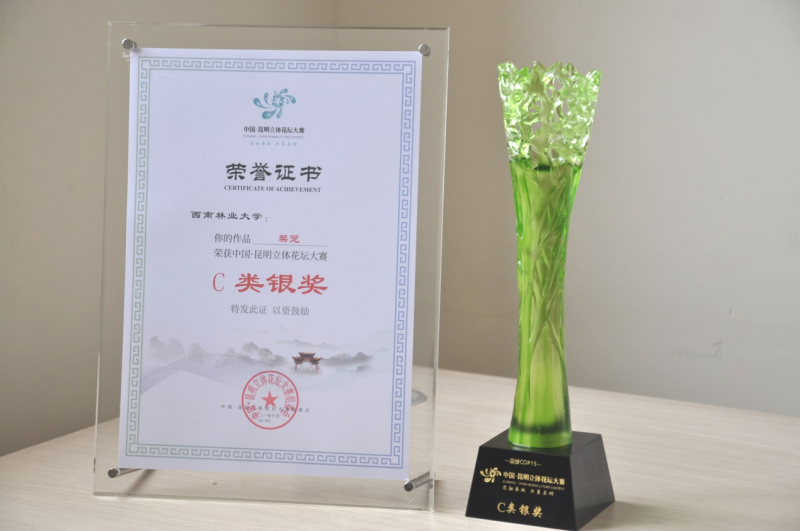 10月14日,在昆明会堂举行的“迎接COP15 – 中国•昆明立体花坛大赛”颁奖典礼上,kaiyun体育刘娟娟副教授领衔的团队作品《樊笼》喜获银奖。