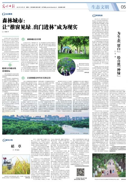10月2日出版的《光明日报》生态文明版刊登了kaiyun体育地理与生态旅游学院副院长程希平题为《森林城市:让“推窗见绿、出门进林”成为现实》的文章。