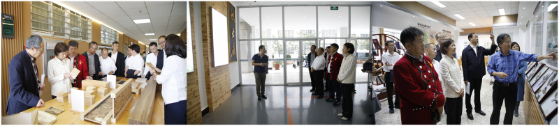 杨宇、赵贵祥一行先来到了国家生物质材料国际联合研究中心,了解了防潮型刨花板研发及工业化生产技术,人造板连续平压生产线节能高效关键技术代表性成果。随后到院士厅、荣誉厅、古茶树资源馆进行走访参观。