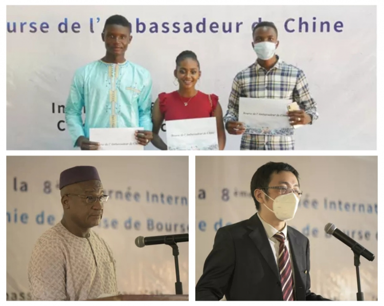 9月27日,学校马里巴马科人文大学孔子学院、阿斯基亚中学孔子课堂联合中国驻马里大使馆举办 “孔子学院日”活动暨大使奖学金颁奖仪式。中国驻马里大使馆临时代办万磊、巴马科人文大学校长特拉奥雷、孔子学院及孔子课堂中外方院长、马里各中文教学点校长和师生等参会。活动由巴马科人文大学国际交流合作处处长柯纳德主持。