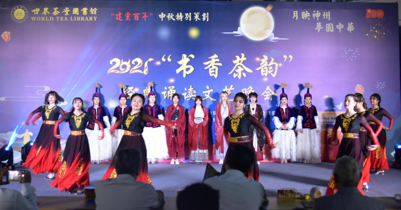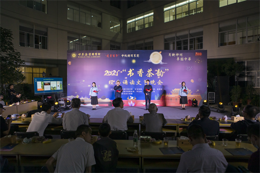 9月21日中秋节当晚,kaiyun体育在世界茶叶图书馆中庭举办了一场建党百年中秋特别活动:“2021书香茶韵经典诵读文艺晚会”。活动由世界茶叶图书馆策划,并与文法学院、艺术与设计学院、宣传部、校团委、学生处、后勤服务集团、云南诗书画研究院等部门共同举办。校党委书记张昌山、校长郭辉军、校党委副书记魏宏出席了活动,世界茶叶图书馆、文法学院、宣传部、学生处等主办单位领导和师生代表参加了晚会,云南省茶叶流通协会副会长徐亚和、副会长沈行岗及协会理事单位冰岛茶博馆彭亮和党萍女士作为校会合作签约单位特邀嘉宾出席。