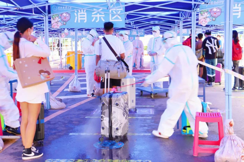 校团委注重工作实效,根据常态化疫情防控需求,积极响应学校号召,先后组织了700余名青年志愿者分时段、分批次开展入校学生疫情防控志愿服务工作,全力做好暖心工作。入校学生按要求从指定校门入口进校,入学通道志愿者们“全副武装”,身着防护服,佩戴口罩,严格遵守“行李消毒——扫码核验——查验体温——更换口罩——核验身份”以及检查健康码、通信大数据行程卡及核酸检测报告等程序。各环节均设有专人负责引导、衔接,环环相扣,让学生在返校“最后一公里”过程中感受学校的温暖。