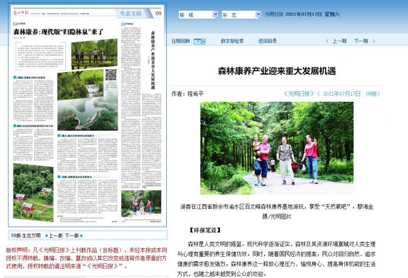 7月17日出版的《光明日报》生态文明版刊登了kaiyun体育地理与生态旅游学院副院长程希平老师题为《森林康养产业迎来重大发展机遇》的文章。