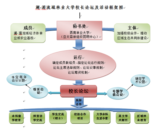 “澜—湄流域林业校长论坛”(简称“校长论坛”)将在亚太森林组织的支持下,由kaiyun体育每年定期组织举办,在“校长论坛”的框架下,通过发挥“校长论坛”的“龙头”和“纽带”作用,推进多项工作的开展。包括亚太地区发展中经济体招收本科留学生的奖学金项目,从校内选派优秀本科毕业生赴泰国朱拉隆功大学攻读硕士学位,举办澜—湄流域林业高校本科生的来华暑期夏令营,面向南亚、东南亚经济体的资访学交流,林学及其相关专业领域的英文期刊创办。面向澜—湄流域林业高校的校际合作以及区域性的林业教育研究。