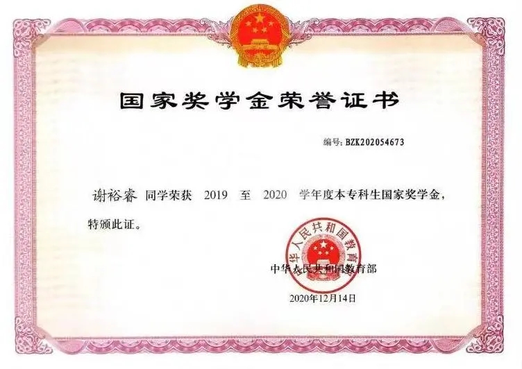 本专科生国家奖学金用于奖励特别优秀的全日制本专科学生。本专科生国家奖学金获奖学生代表是爱党爱国、信念坚定,严谨求学、勇于创新,诚信友善、热心公益,矢志成为勇攀学术高峰的不懈追求者、社会主义核心价值观的忠实践行者、中国特色社会主义事业的可靠接班人。希望广大学生以他们为榜样,认真学习、积极进取,肩负历史使命,坚定前进信心,立大志、明大德、成大才、担大任,努力成为堪当民族复兴重任的时代新人,让青春在为祖国、为民族、为人民、为人类的不懈奋斗中绽放光彩。
