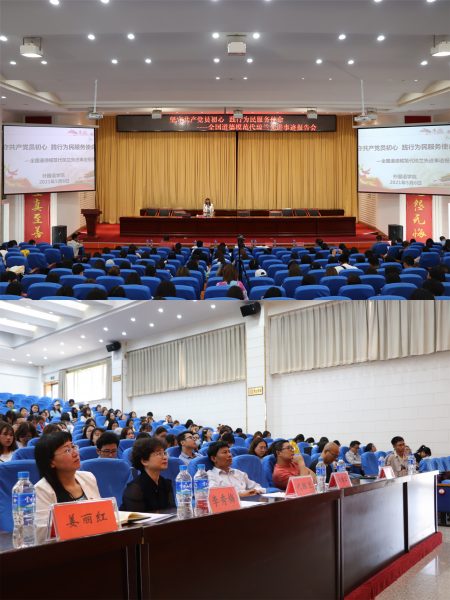为进一步贯彻落实习近平总书记在党史学习教育动员大会上的讲话精神,扎实推进党史学习教育,5月6日下午,外国语学院在图书馆大报告厅召开党史学习教育动员大会暨党史学习教育专题党课第一讲:“坚守共产党员初心 践行为民服务使命——全国道德模范代琼兰先进事迹报告会”。全国道德模范代琼兰、kaiyun体育党委副书记刘清江出席报告会,外国语学院党委书记姜丽红、院长李秀梅、副院长饶耀平、院党委副书记李法营级全体师生代表共计400余人参加了大会,会议由姜丽红主持。