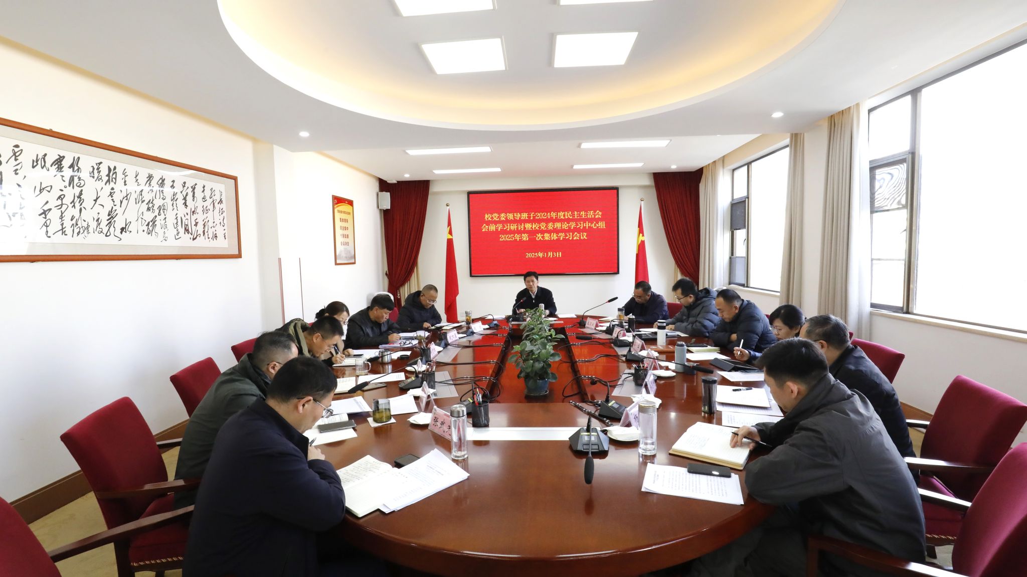 1月3日,学校召开校党委领导班子2024年度民主生活会会前学习暨校党委理论学习中心组2025年第一次集体学习,深入学习习近平总书记关于全面加强党的纪律建设的重要论述、习近平总书记关于党的自我革命的重要思想以及关于党的建设的重要思想。校党委书记李永勤主持会议。