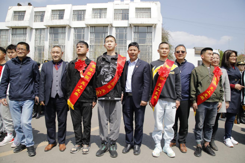 刘清江和各职能部门、各学院负责人为参军入伍同学绶“参军报国 无上光荣”带,佩戴红花。刘清江在同参军学生交流中指出,参军无上光荣,携笔从戎更是抒写青春无限风采的良好方式。他感谢参军学生家长为国家、为社会培养了宝贵人才。