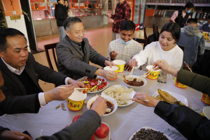 学校举行了特别的春节包饺子活动。张昌山、郭辉军、程小放与学生们一起包饺子,话团圆,为同学们送上新春祝福,希望同学们在留校期间注意安全,合理安排时间,利用假期为自己“加油充电”,渡过一个充实、愉快、平安的春节。