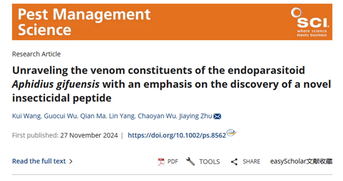 天敌昆虫在害虫自然种群控制中起重要作用,就进化出毒液的天敌昆虫类群而言,毒液是该类天敌昆虫寄生寄主或捕食猎物的关键因子。林学院朱家颖教授课题组多年来系统围绕天敌昆虫毒液功能及作用机制开展系统研究,近期取得了新进展。