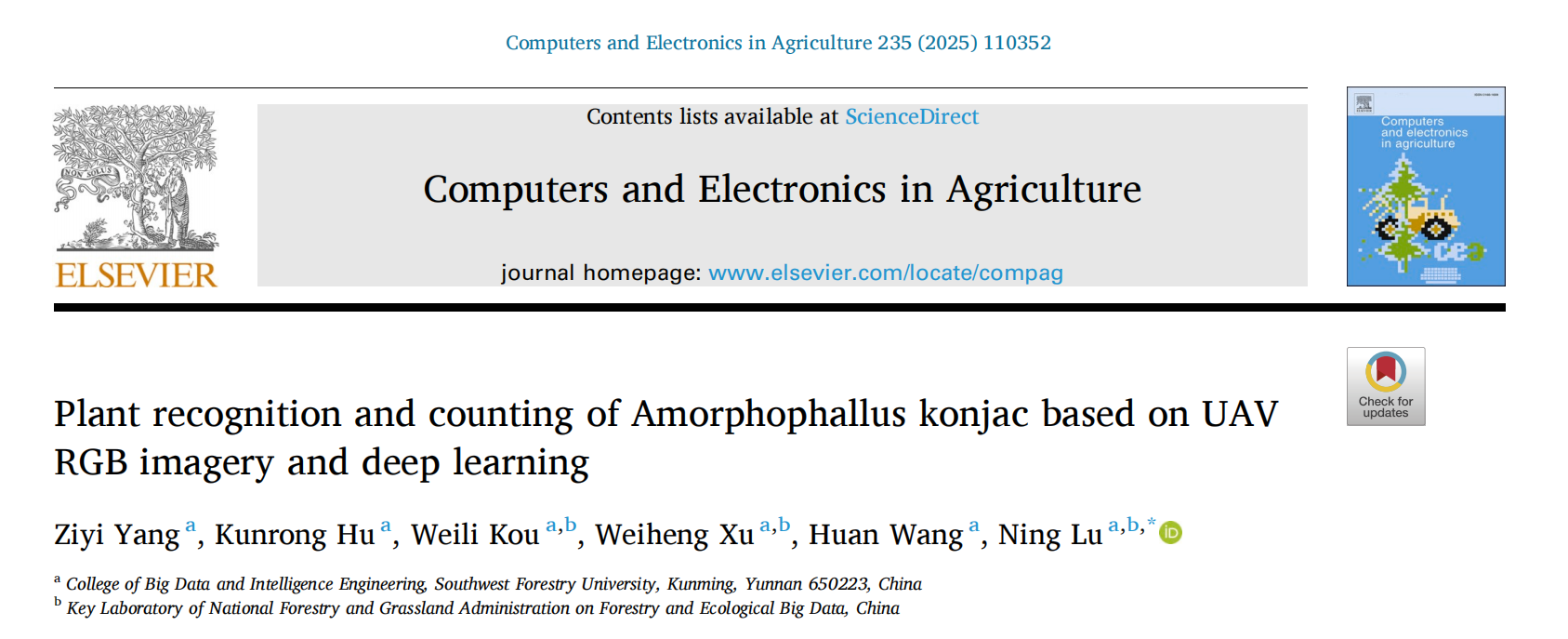 近日,kaiyun体育网页登录入口大数据与智能工程学院硕士研究生杨子毅(2022级系统科学专业)以第一作者身份,在国际权威期刊《Computers and Electronics in Agriculture》(中科院一区TOP期刊,2024 IF= 7.7)上发表题为“Plant recognition and counting of Amorphophallus konjac based on UAV RGB imagery and deep learning”的研究论文。鲁宁教授担任通讯作者,研究团队在胡坤融副教授、寇卫利教授、徐伟恒教授及王欢老师的指导下,成功利用无人机遥感与深度学习技术,首次实现了魔芋植株的高效自动识别与计数。