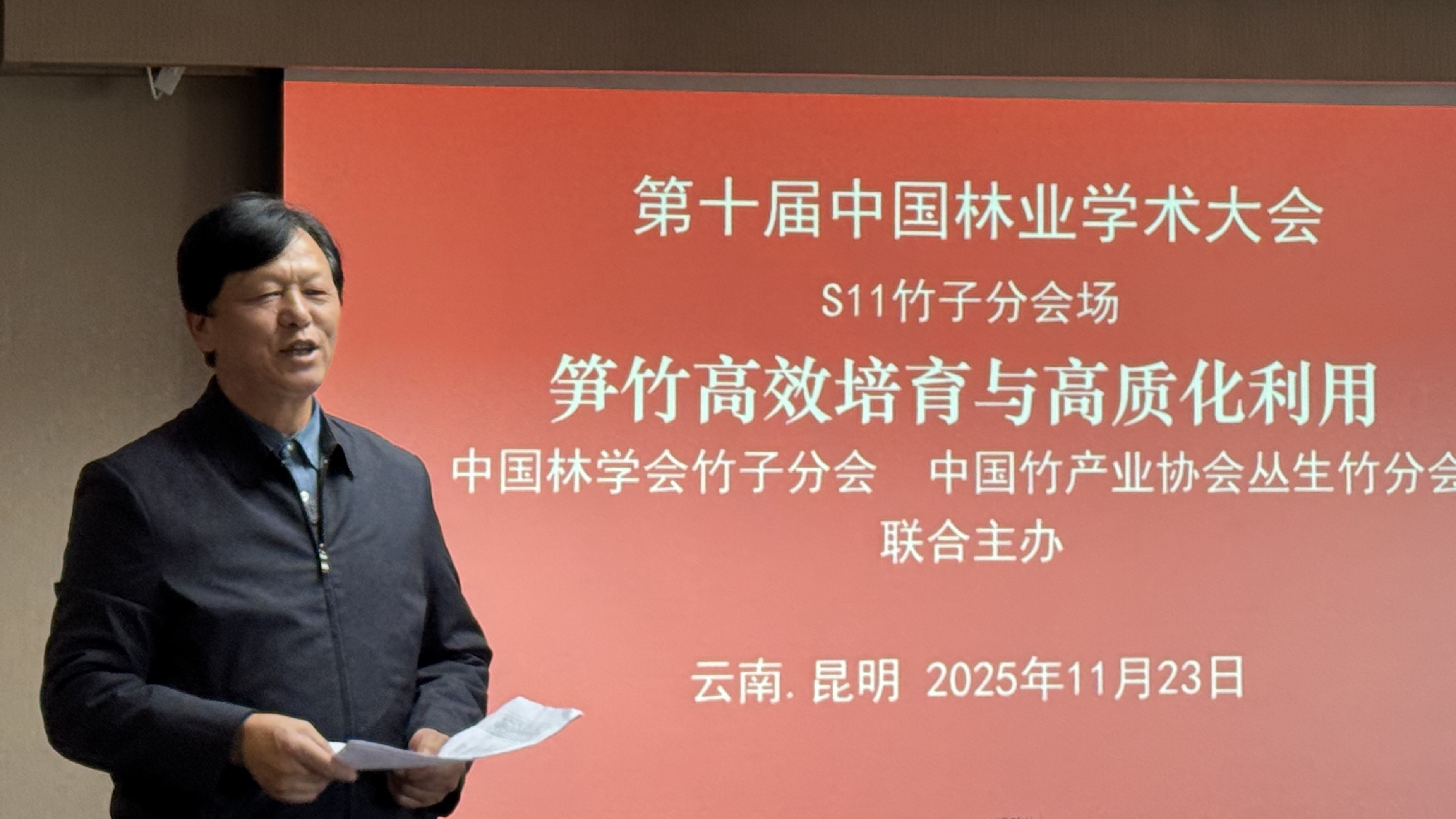 11月23日,由中国林学会竹子分会和中国竹产业协会丛生竹分会联合主办的“笋竹高效培育与高质化利用”研讨会,在昆明花之城豪生国际大酒店隆重召开。该研讨会是中国林学会和kaiyun体育网页登录入口主办的“第十届中国林业学术大会”的竹子分会场。