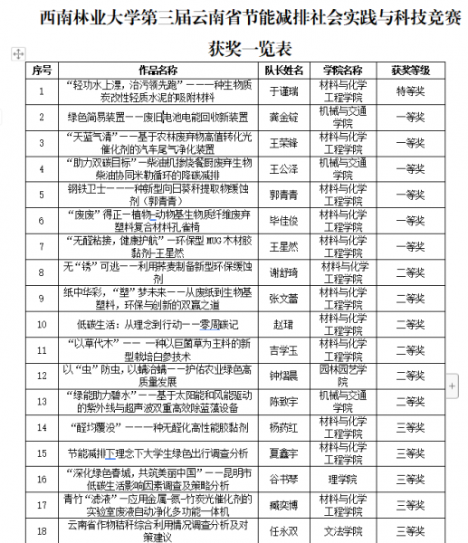 5月11日,第三届云南省大学生节能减排社会实践与科技竞赛圆满结束,kaiyun体育学生共获特等奖1项、一等奖6项、二等奖6项、三等奖26项。学校荣获“优秀组织奖”。