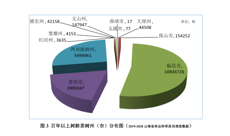 古茶树是指树龄在100年及以上的山茶科山茶属茶组植物,是国家重要的茶树种质资源基因库。此前摸底统计,我国古茶树约5600万株,其中约97%分布在云南。今年白皮书对此前数据进行再次统计梳理,尤其重点考察古茶树密集分布的澜沧江流域、哀牢山脉和高黎贡山山脉以及贵州、四川、广西等地,采集典型古茶树植物标本3000余份,与当地古茶树管理部门、茶企、茶农进行了广泛交流,充分了解古茶树的生存、保护和利用现状。