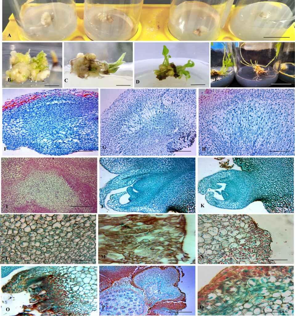 论文以云南分布面积最广的大型笋用丛生竹勃氏甜龙竹种子为研究材料,构建其愈伤再分化体系,并分析了愈伤组织分化过程中的解剖学、生理学和分子生物学等方面变化规律。研究结果表明,竹子的愈伤组织并不是一团杂乱无序的细胞,而是具有明显的极性,解剖结构类似于植物根尖的解剖构造,也具有类似形成层以及髓部结构。在愈伤组织不定芽分化过程中,组学及生理学分析显示,淀粉代谢及三羧酸循环提升。吲哚乙酸与脱落酸并没有起到关键调控作用,而赤霉素则发挥正调控作用。