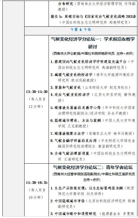 研讨会议程:(1)主旨发言;(2)主题论坛:生态文明与碳中和;(3)《气候变化经济学》学术前沿与教学研讨;(4)《气候变化经济学》青年论坛。