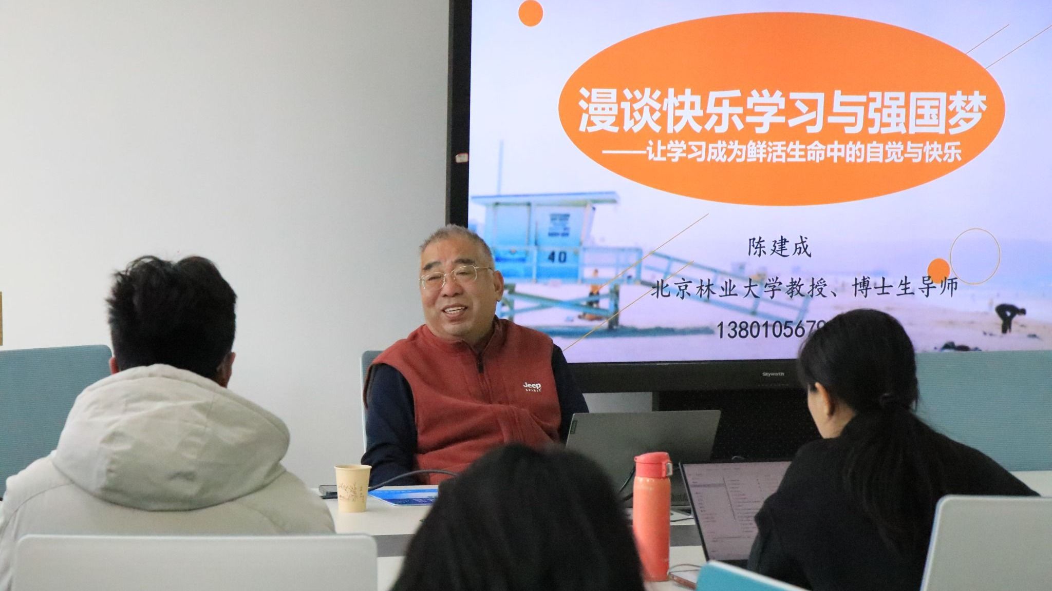 1月7日,北京林业大学陈建成教授应邀为“经管大讲堂”作题为“漫谈快乐学习与强国梦”的学术报告。报告会在经济管理学院302会议室举行,经济管理学院副院长李娅教授主持,40余名师生代表参加。