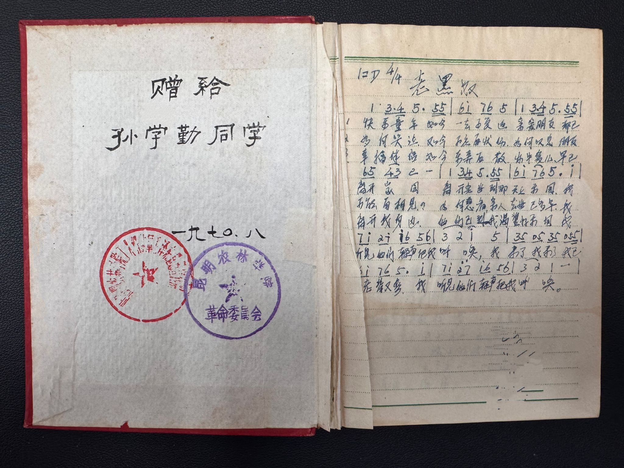 (笔记本为1970年昆明农林学院赠予孙学勤同学)