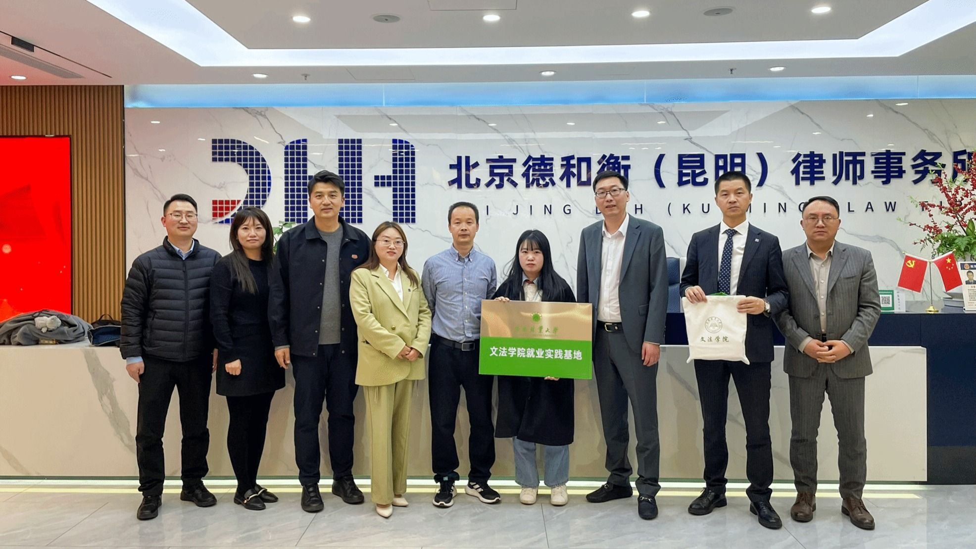 2月26日,文法学院院长李国新、党委副书记张译文一行到北京德和衡(昆明)律师事务所开展“访企拓岗”专项行动。