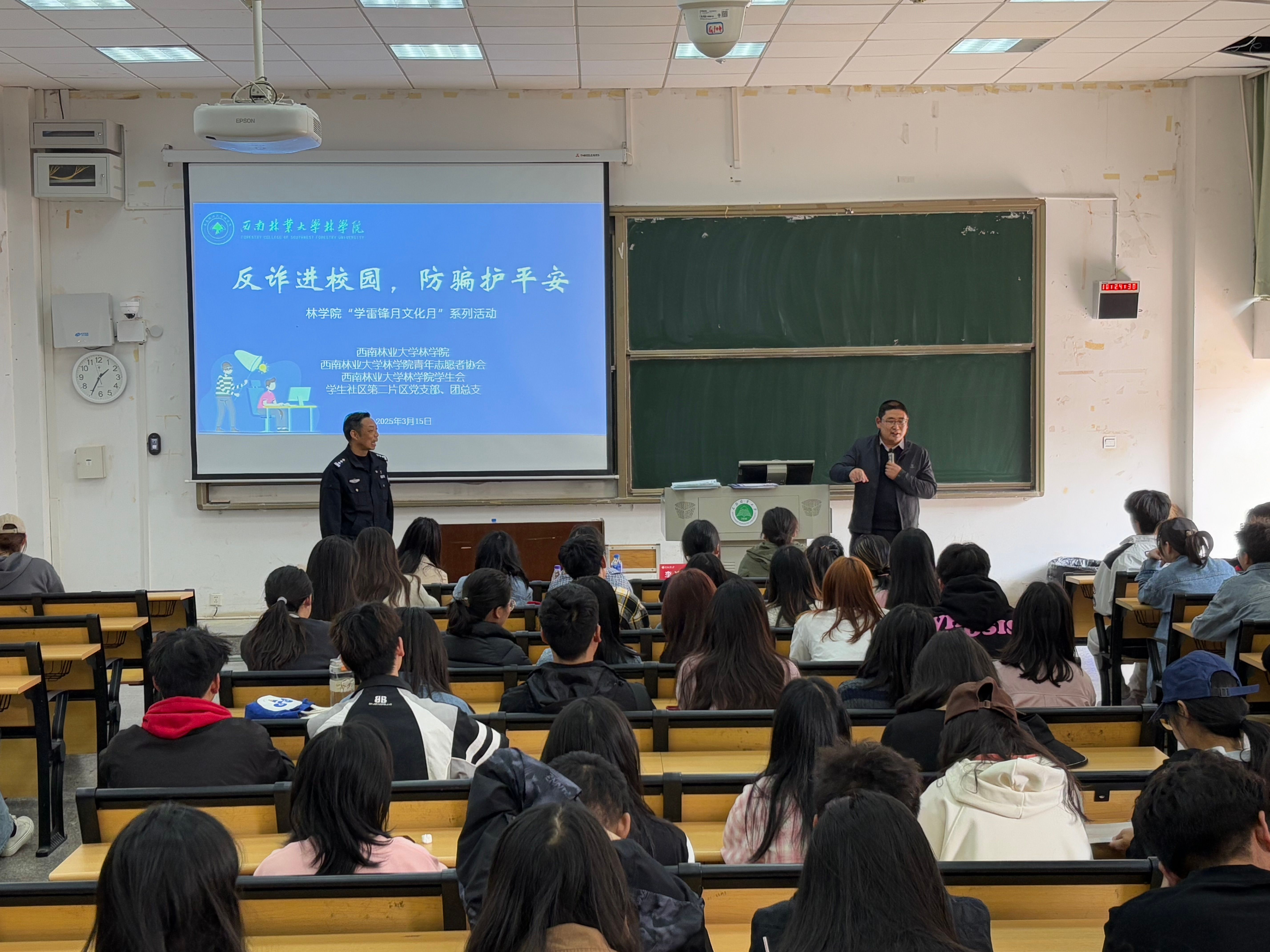 此次活动特别邀请了白龙路派出所寸文坤警官到校开展防范电信诈骗专题讲座,林学院党委副书记李法营,公寓管理部片区组长唐凯莉,学院辅导员、二片区楼长和层长以及林学院2024级新生班全体班委参加讲座。