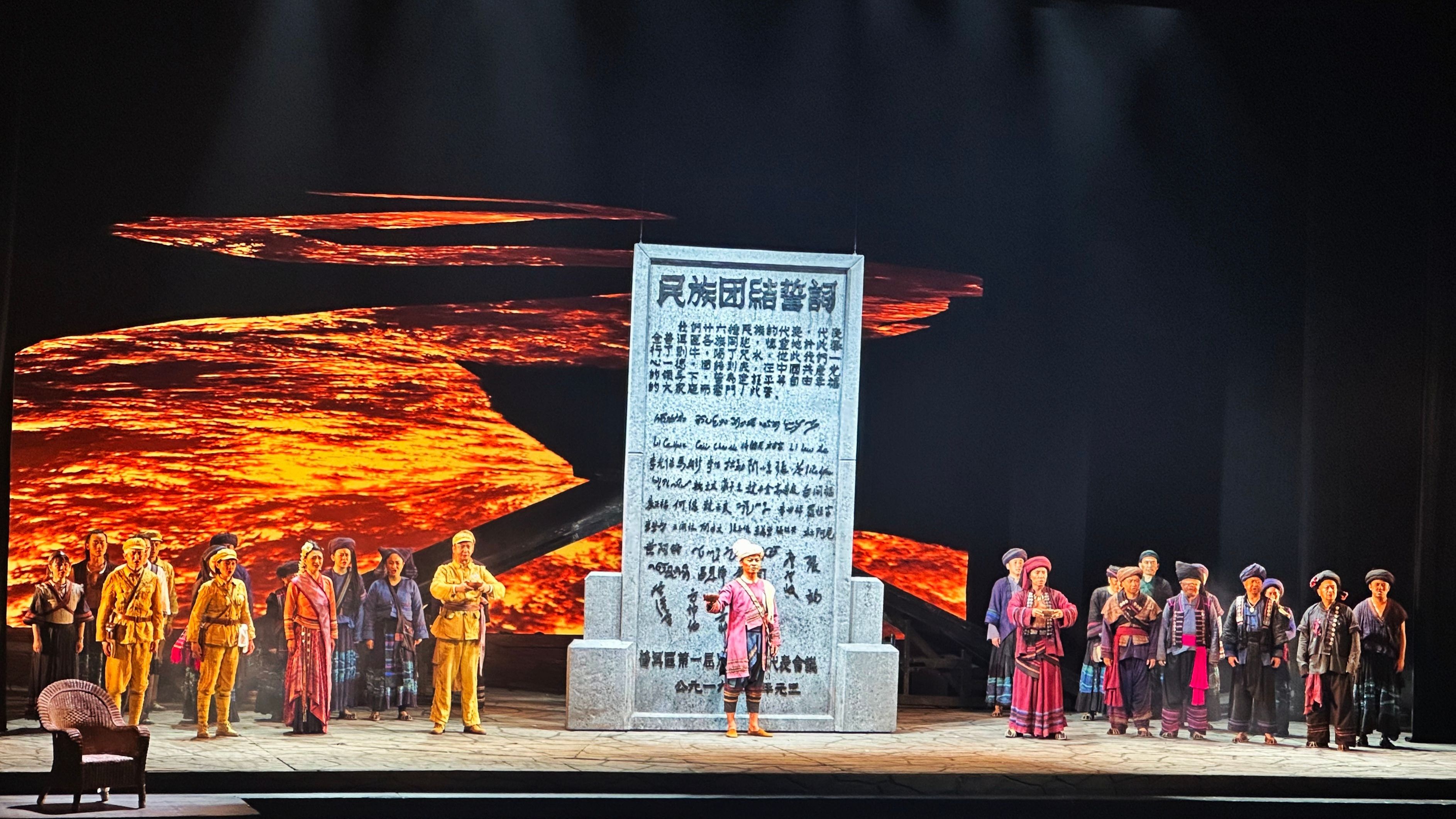 话剧《澜沧水长》以新中国成立初期云南边疆各民族在党的领导下立下“民族团结誓词碑”的真实事件为主线,生动演绎了澜沧江畔各族人民从隔阂走向团结、从封闭走向开放的史诗历程。这一过程不仅体现了新中国成立初期的民族政策成就,更是对“铸牢中华民族共同体意识”这一新时代主题的有力回应。通过话剧的形式,师生们穿越时空长河,身临其境去感受那段难忘岁月,真切感受先辈们为了民族团结所付出的巨大努力和牺牲。