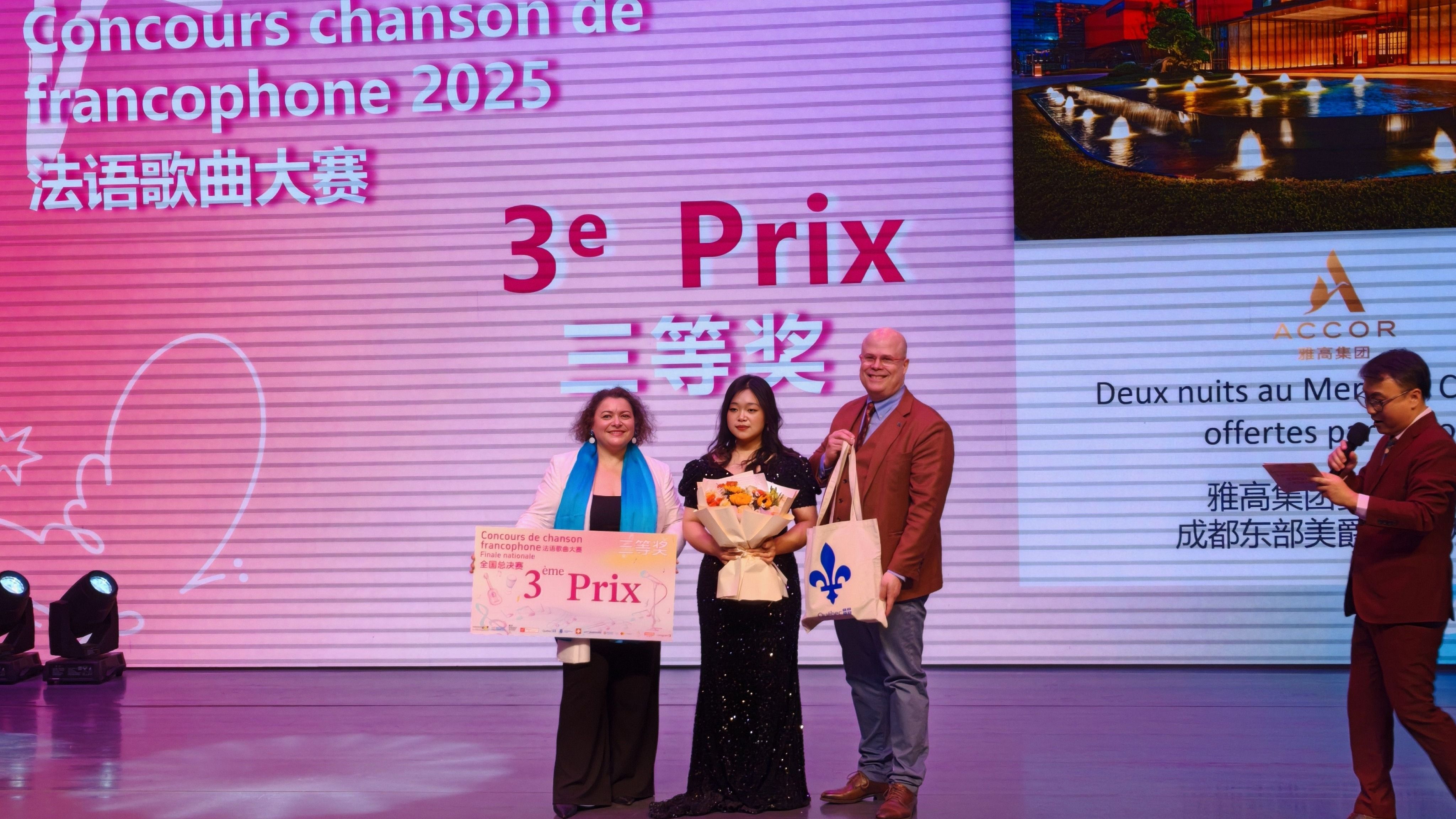 本届赛事吸引全国350余名选手参与,北京大学、上海交通大学等14个赛区冠军同台竞技。曹蕾以昆明赛区第一名的身份闯入全国总决赛。其创新演绎不仅呼应了大赛“法语世界,‘她 ’样精彩”的主题,更突显了新生代法语学习者对文化表达的多元探索。赛事评委组从发音、情感、舞台表现等维度严格评分,最终曹蕾以总分第三的成绩,刷新昆明赛区在该赛事中的历史最佳排名。