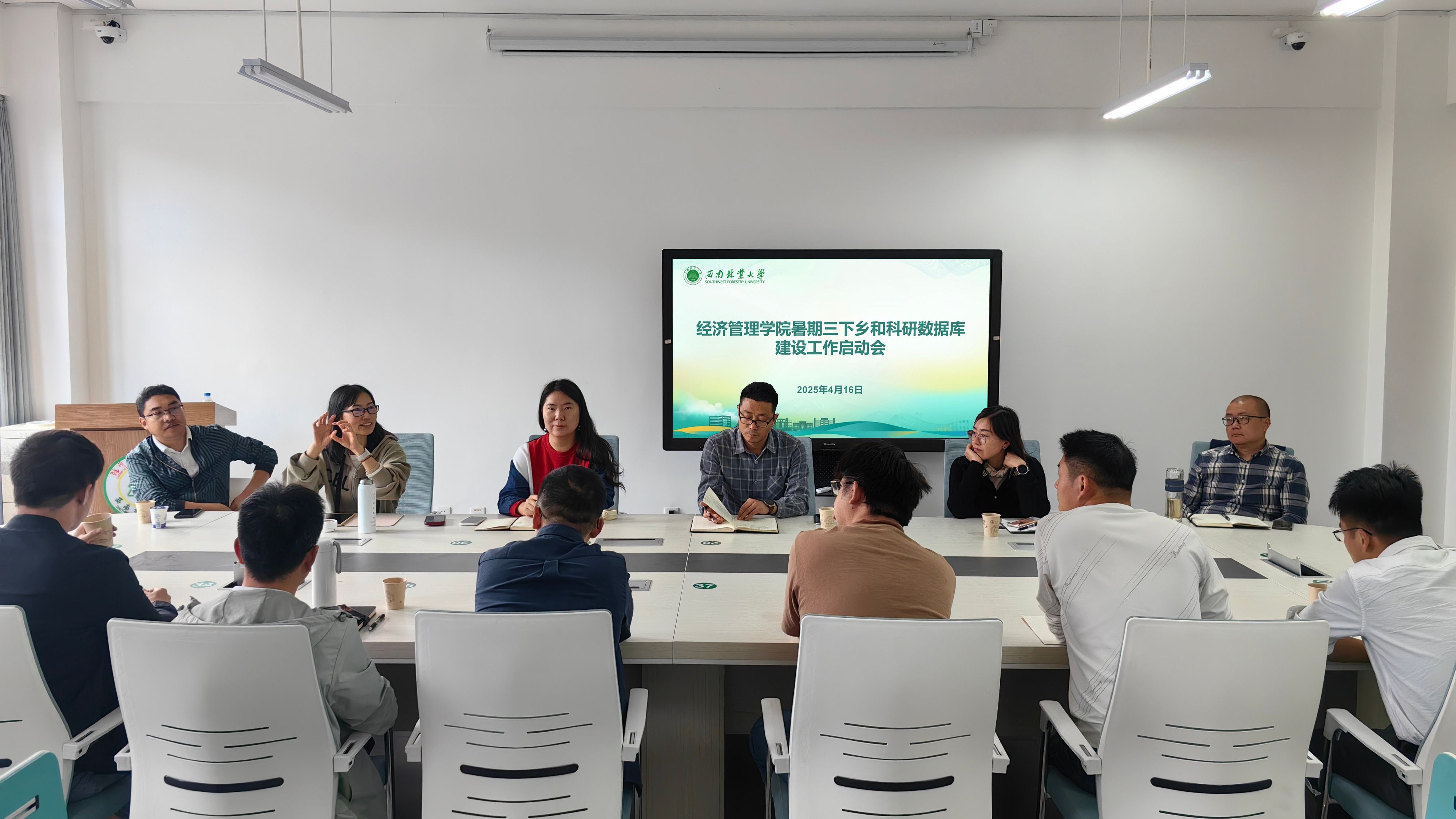 4月16日下午,经济管理学院召开暑期三下乡和学院科研数据库建设工作部署会,学院党政班子全体成员、学院学科办工作人员及学院青年教师出席会议。