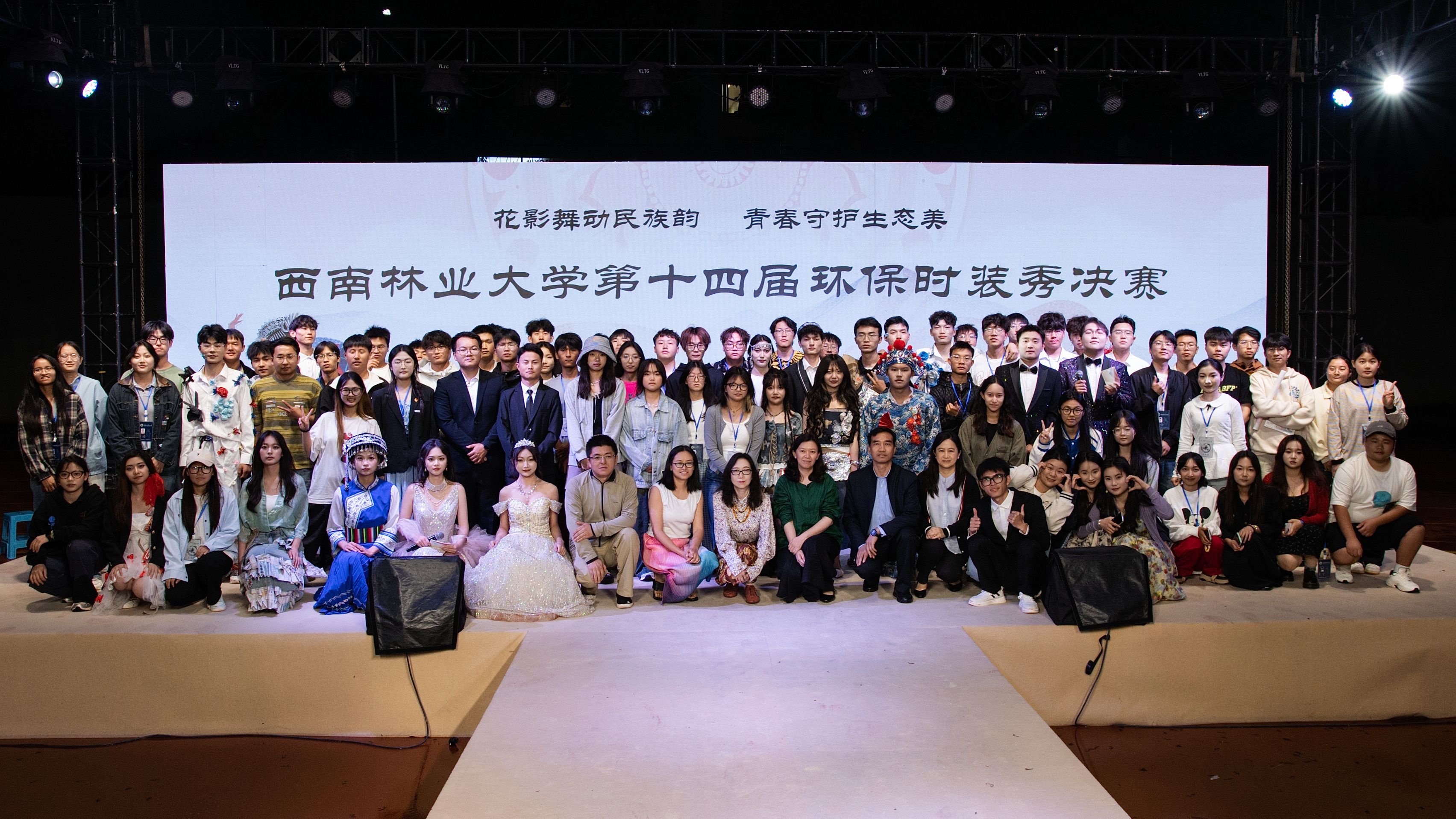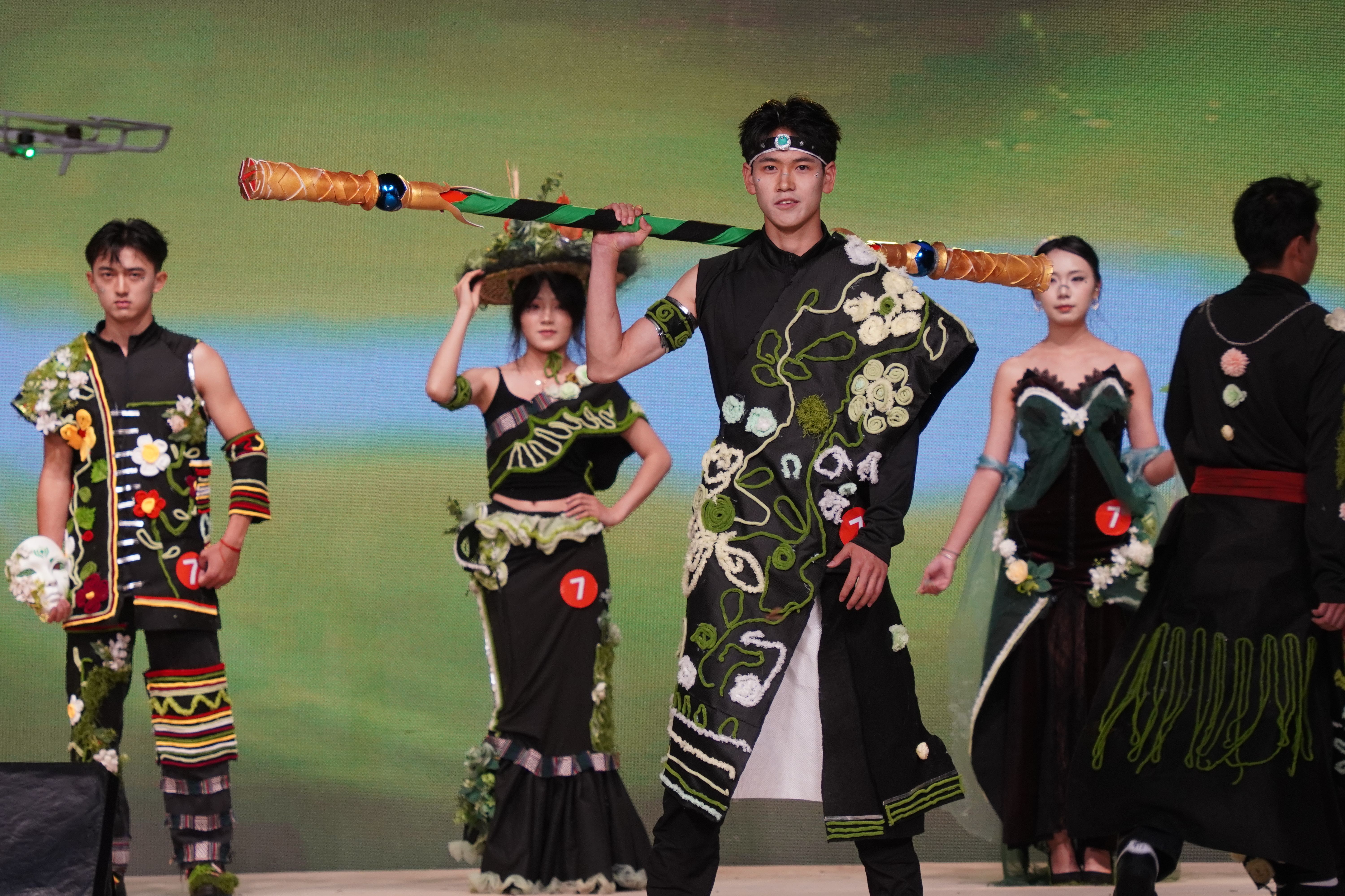 本次大赛共有20支队伍报名,参赛团队用生活中随手可得的废旧材料,制作出一件件独具匠心的服装,通过舞台演绎,绽放民族生态美。通过初赛选拔和决赛角逐,最终10支队伍脱颖而出,共产生一等奖2名、二等奖2名、三等奖3名、优秀创意奖3名。艺术与设计学院“再生之韵队”和“还聚一起队”并列第一。