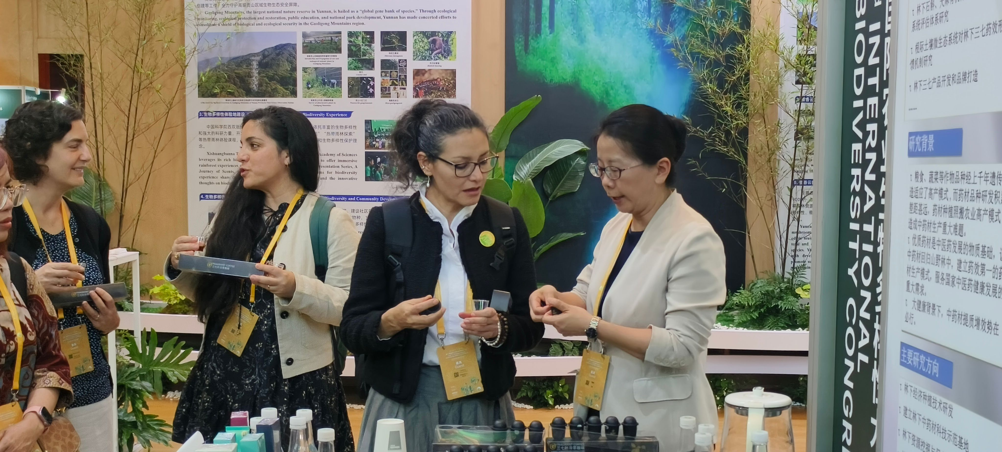 副校长何霞红教授团队研发的“林下中药材种植与生态评估”项目在大会展区亮相,成为中外学者交流的重要窗口,引发国内外专家、学者及行业代表的广泛关注。展区内,云南省林下资源保护与利用重点实验室展示了天麻、三七、茯苓、石斛等特色中草药及其生态种植技术。
