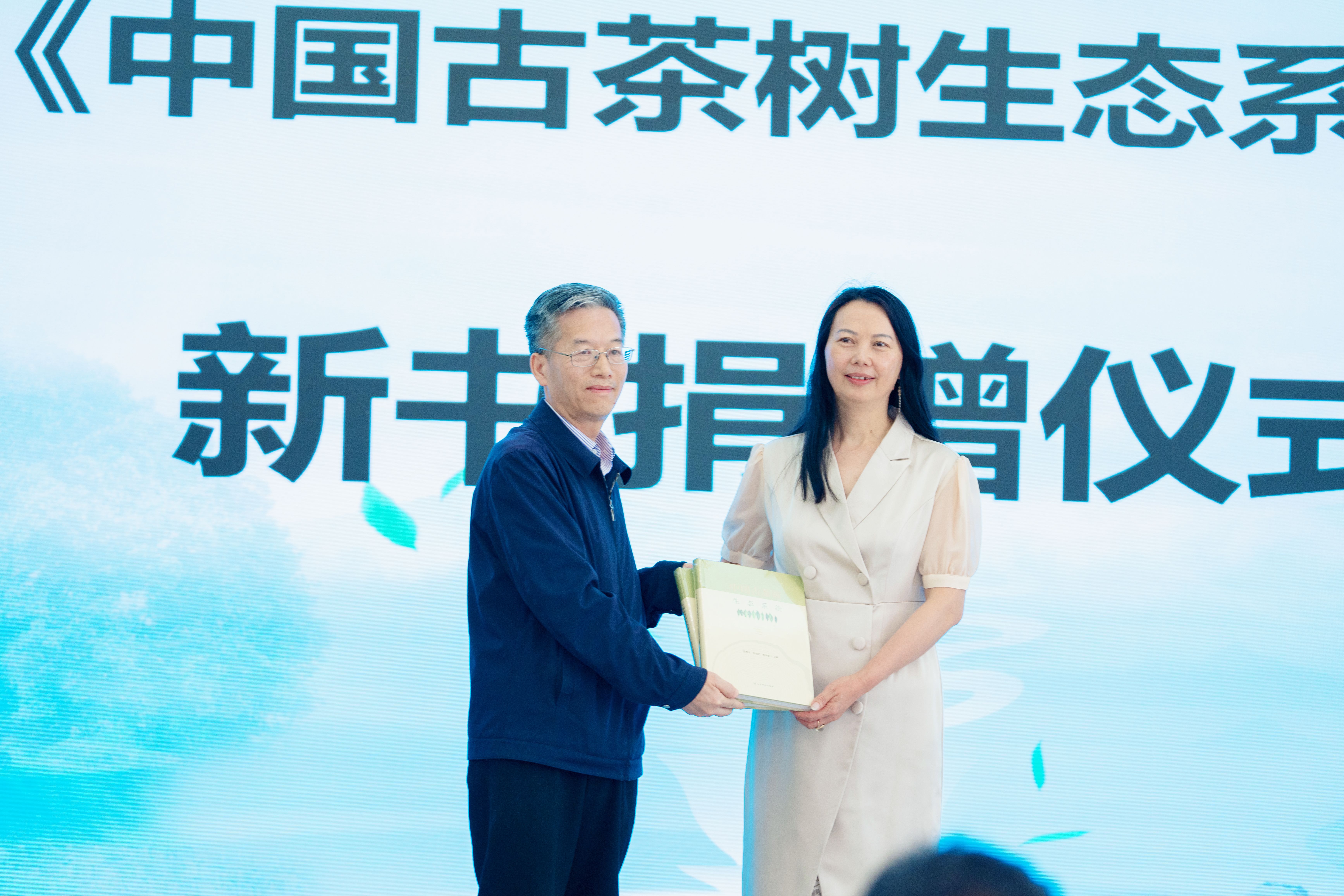 活动现场,古茶树研究中心工作人员陶燕蓝介绍了白皮书(2025版)特色与亮点;王涛、郭华等领导实时发布《中国古茶树资源状况白皮书(2025版)》。古茶树研究中心教授蓝增全作《中国古茶树生态系统》专著新书首发推介,并向世界茶叶图书馆捐赠新书。在读博士罗义菊发出《古茶树资源保护与国际茶日》的倡议,呼吁全社会共同关注古茶树资源的可持续利用与保护、人人都要“喝茶、识茶、爱茶”、加强国家间茶文化交流与合作,以实际行动践行“茶和世界,共品共饮”的理念,为全球茶文化的传承与发展贡献力量。