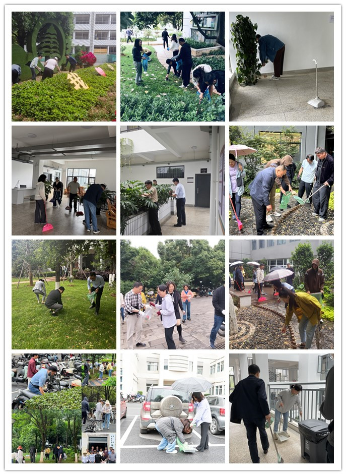 在立德楼、智华楼、致知楼、至善楼、标本馆、图书馆、大学生活动中心等室内外区域,职能部门广大党员、干部职工认真清扫落叶、垃圾、烟头、清理枯枝杂物等,积极营造人人讲文明、处处见新风的良好氛围。
