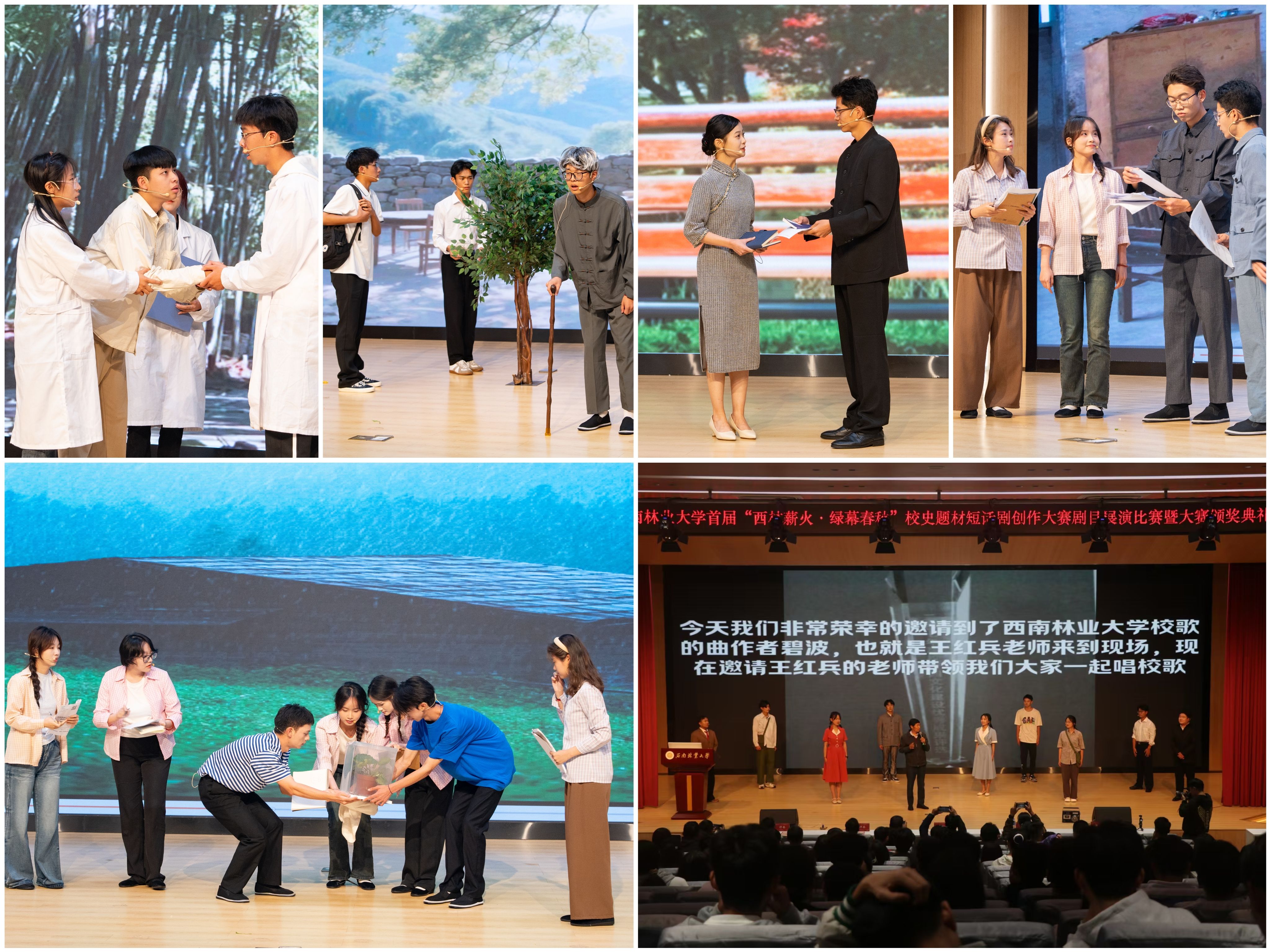比赛中,来自图书馆(档案馆、校史馆)、材料与化学工程学院、外国语学院(国际学院)、园林园艺学院、大学生艺术团、文法学院等六支入围剧目展演比赛的队伍依次登台,为观众带来了《绿色的希望》《木韵春秋》《古茶新芽》《林苑双璧》《林火相传》《绿染华夏 生生不息》等精彩剧目。这些作品主题鲜明,以丰富多样的形式,生动展现了kaiyun体育先辈艰苦创业的精神风貌、师生在教育科研中的感人故事以及对学校未来的美好憧憬,每一个细节都饱含着师生们对校史文化的深刻认同和对学校的深厚情感。